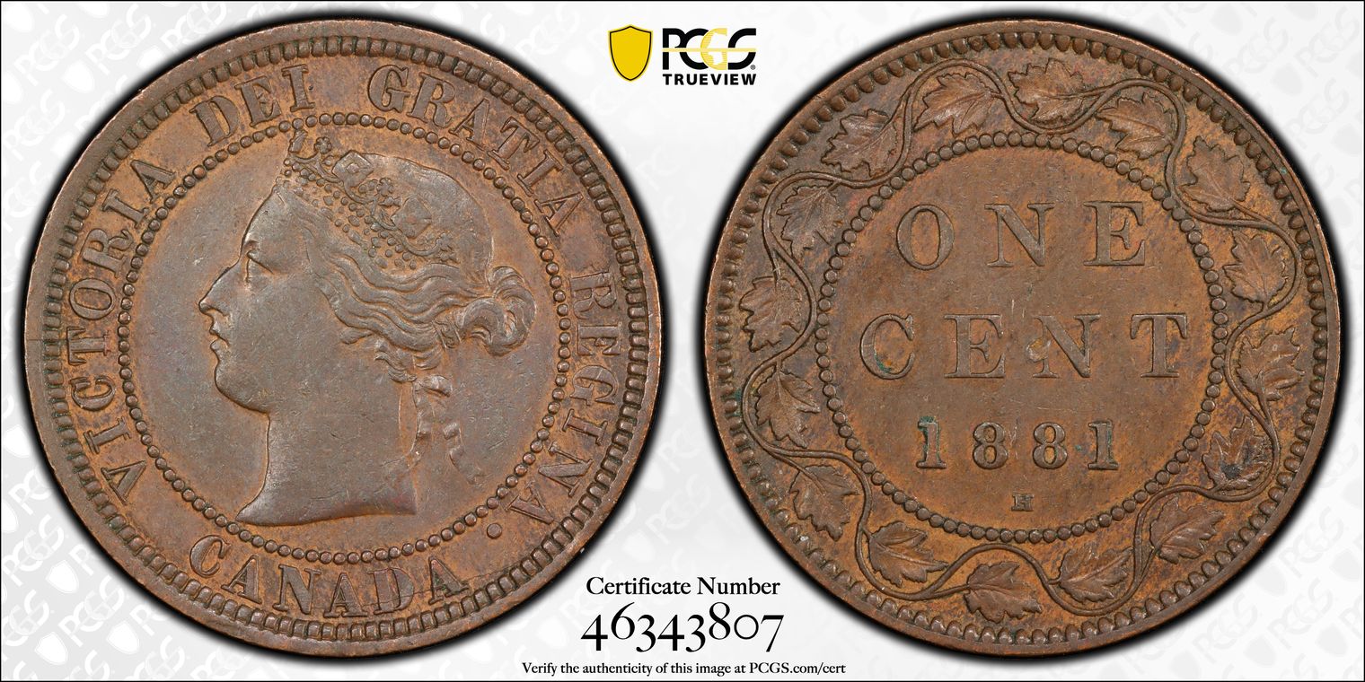 Bought at auction with Stack's Bowers Jan 2025.... Brisk bidding!! I believe this coin to be much rarer than thought?? I have seen some 1881 Canadian Large Cents that have been classified as Doubled Die Obverse coins, yet with far less doubling on the coins Obverse lettering... I assume there are more than just one doubled Die Obverse for this date??? What intrigues me about this coin is the doubling is very strong; not as strong as the famous United States 1955 Doubled Die Cent, but for the Canadian Large Cent collector, a coin with nice strong doubling and huge collector appeal. If I was comparing, I'd guess this coin in the realm of Canadian Large Cents holds very strong interest from the novice to the professional expert!? One would think more of this variety would have been certified to date since the doubling is easy to spot?