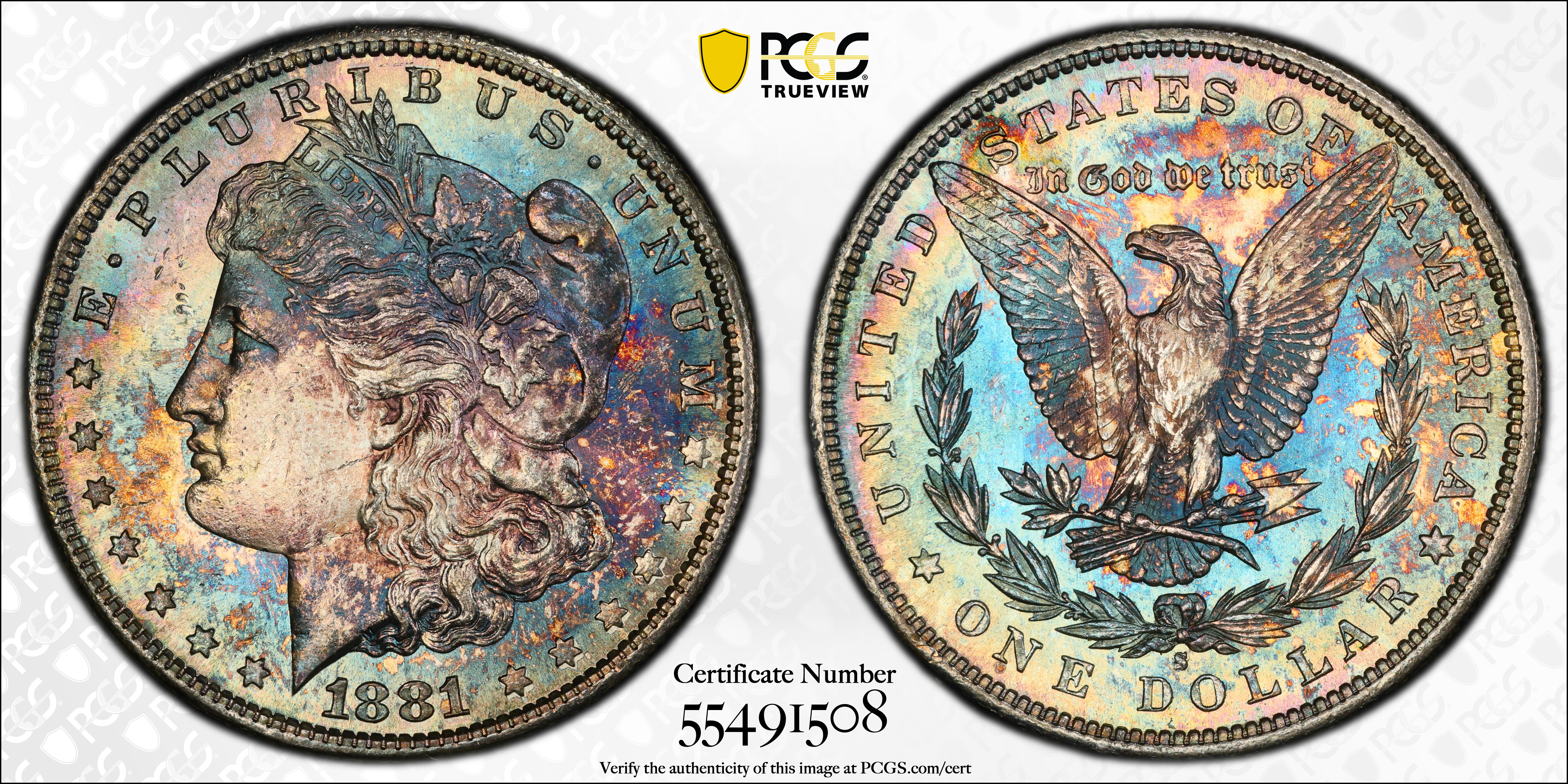 1881-S $1 MS62 认证号55491508, PCGS号7130
