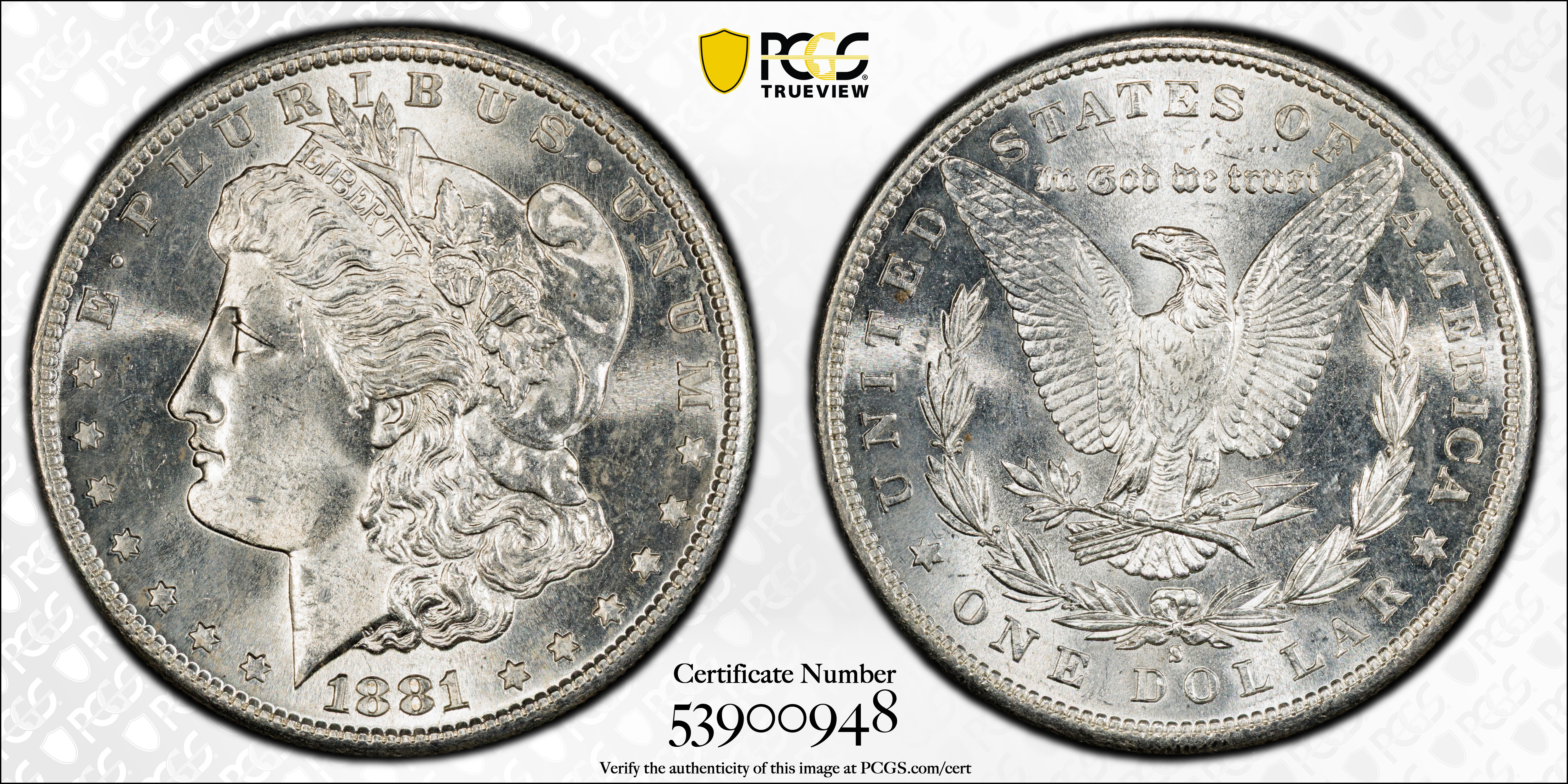 1881-S $1 MS62 认证号53900948, PCGS号7130