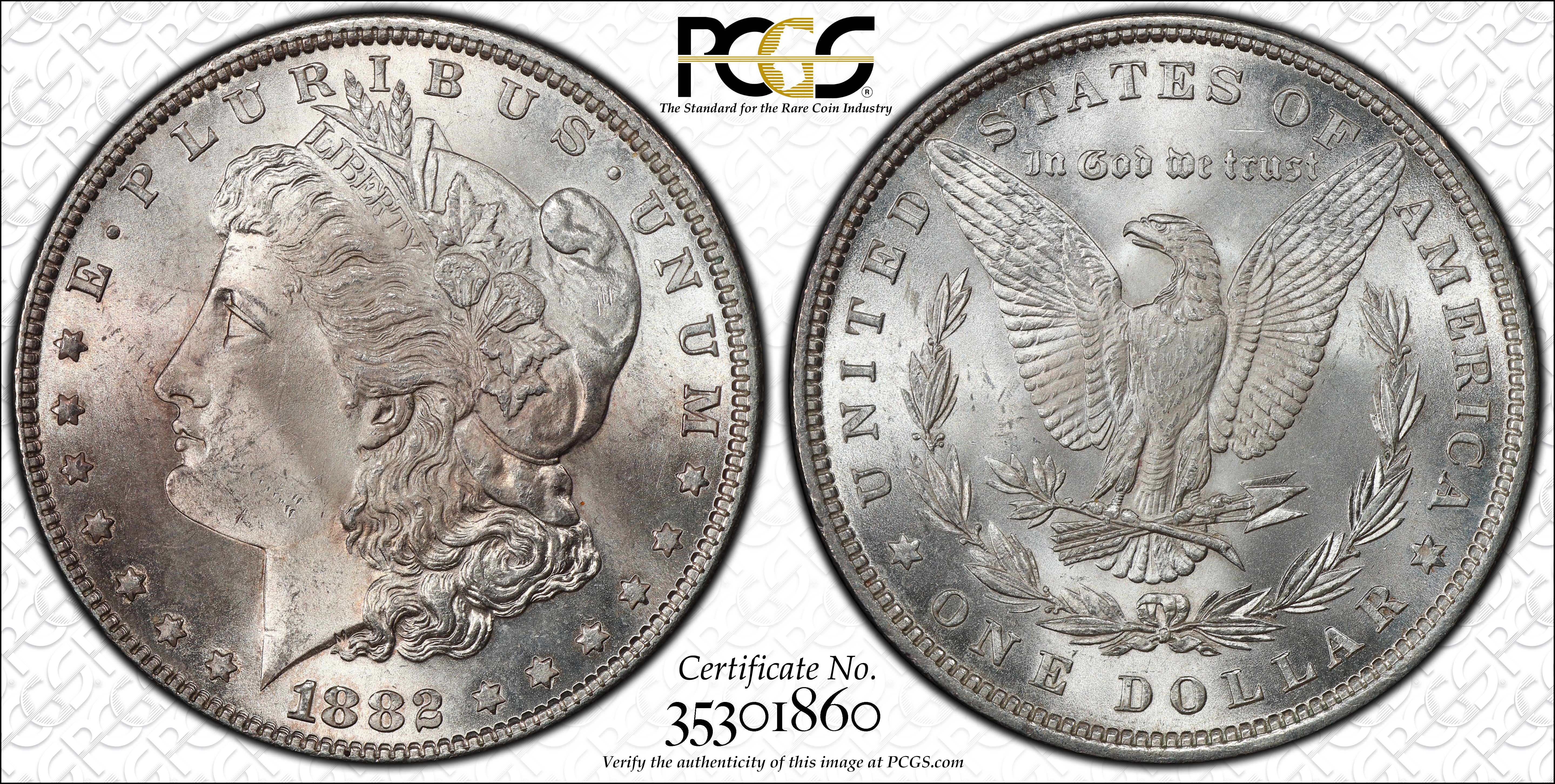 1882 silver dollars are very common in circulated grades as well as lower Mint State levels, but in MS- 65 they are scarce.