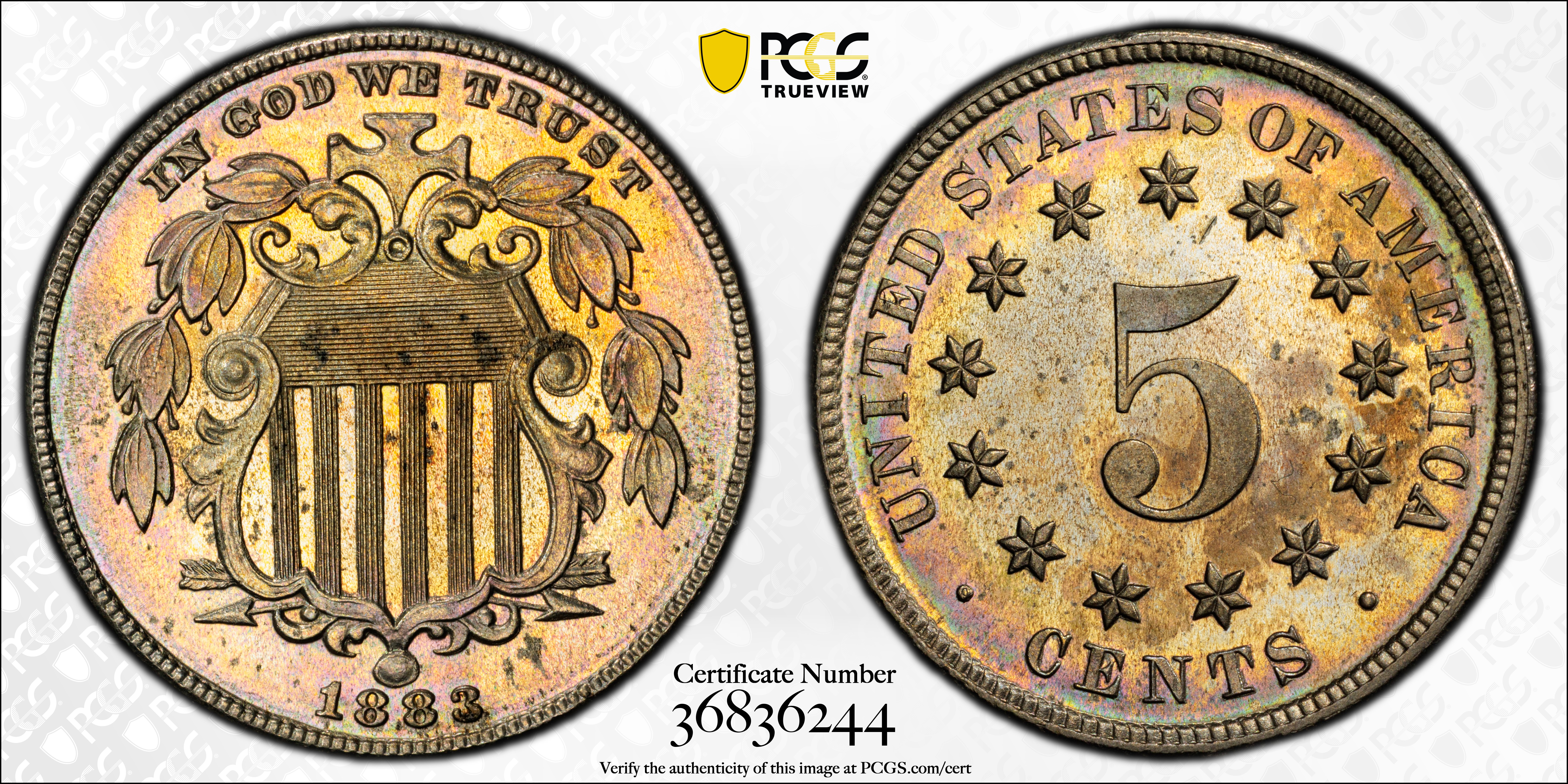 1883 5C Shield PR63 认证号36836244, PCGS号3838