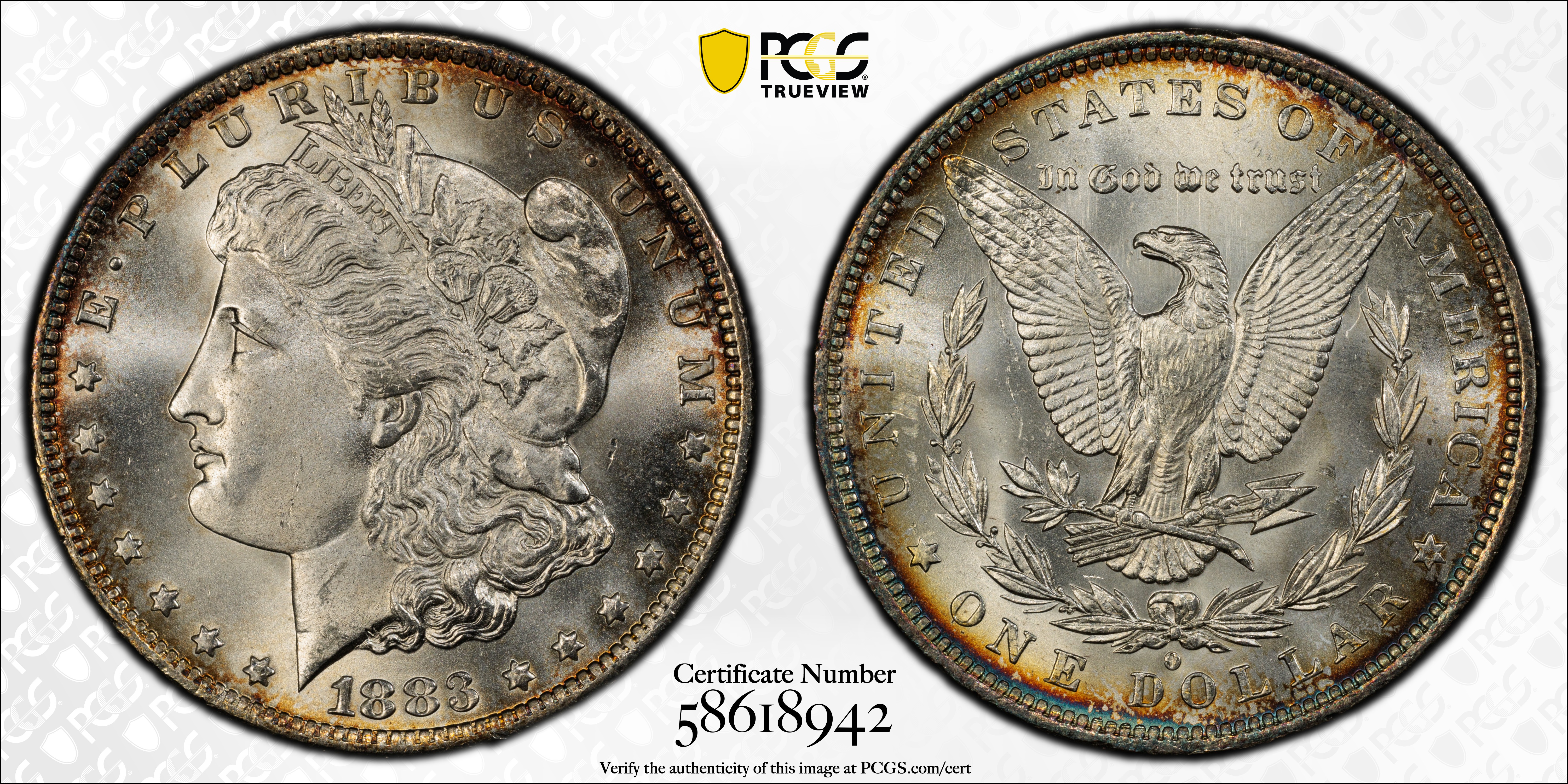 1883-O $1 MS66 认证号58618942, PCGS号7146