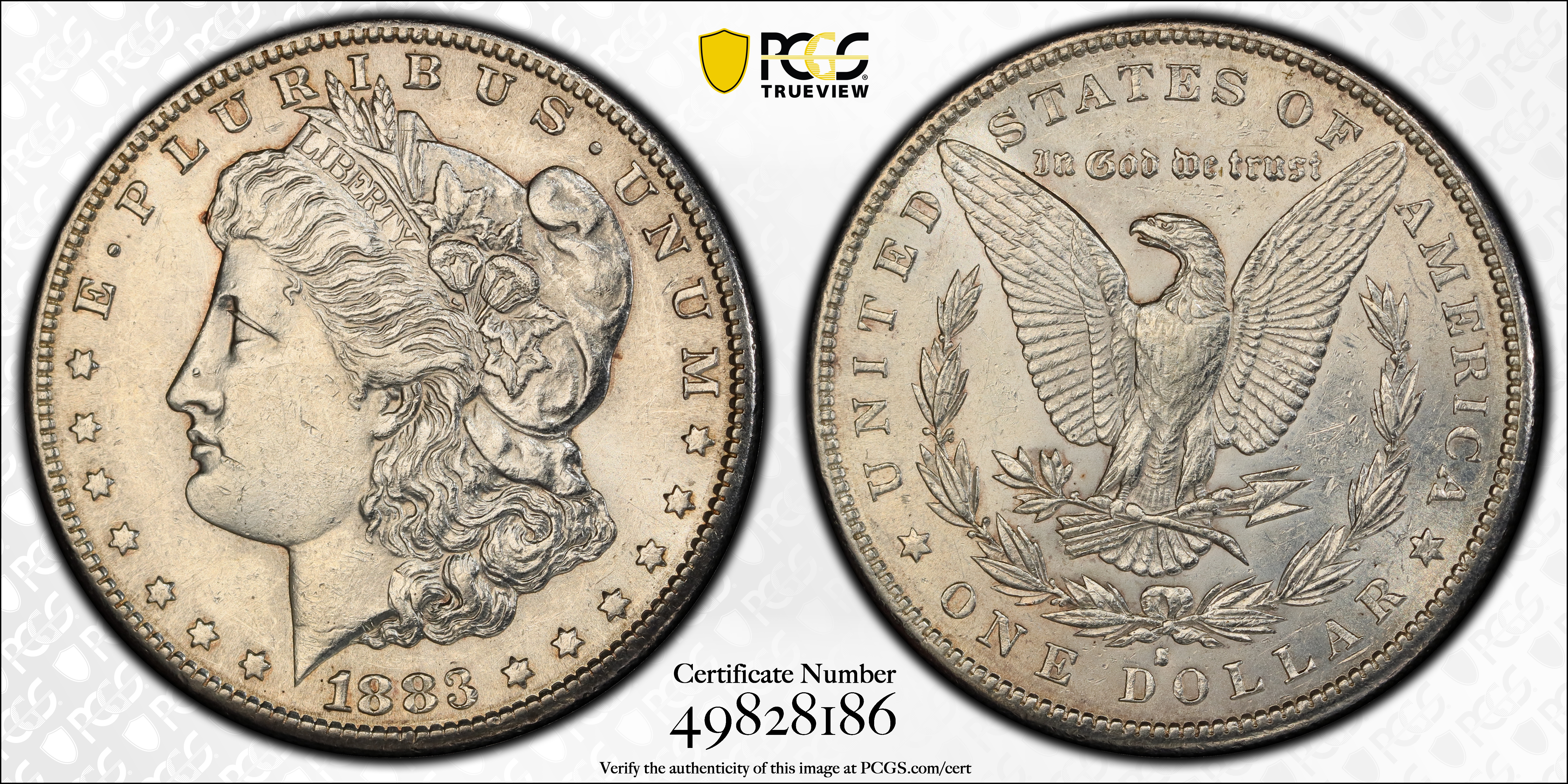 1883-S $1 AU58 认证号49828186, PCGS号7148