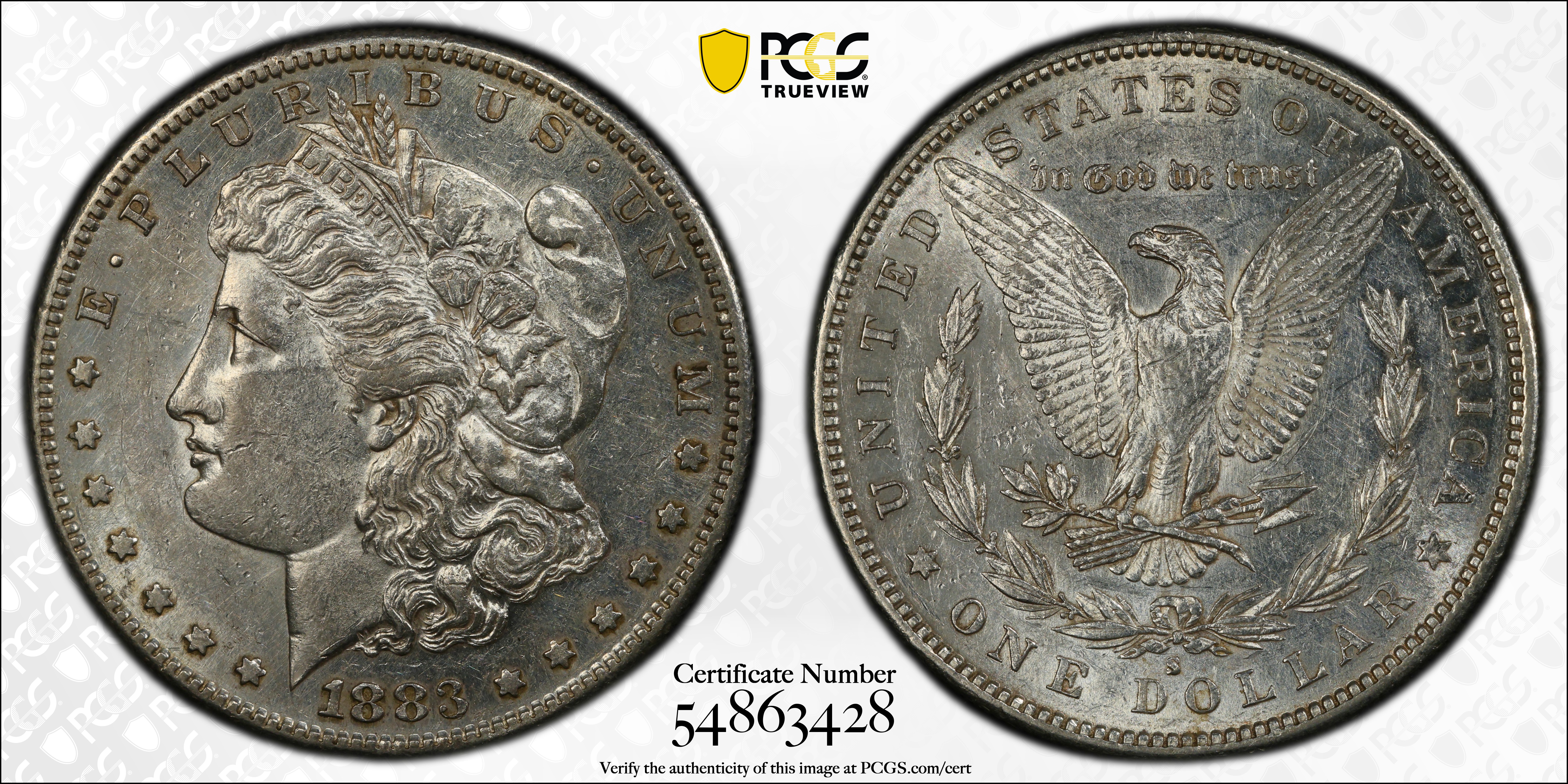 1883-S $1 AU53 认证号54863428, PCGS号7148