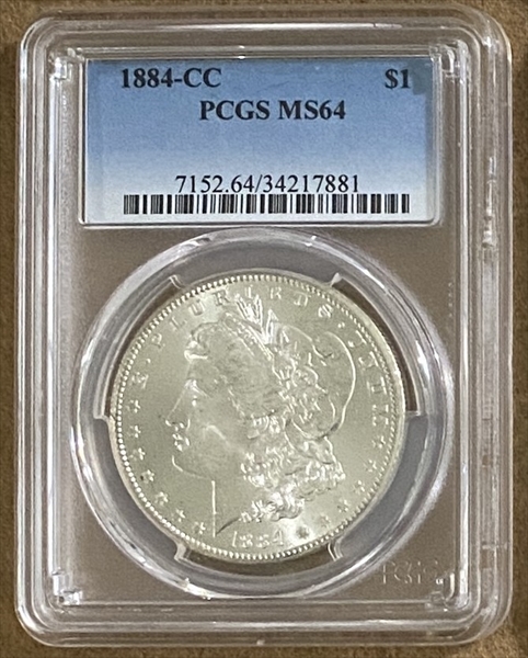 1884-CC $1 MS64 认证号34217881, PCGS号7152