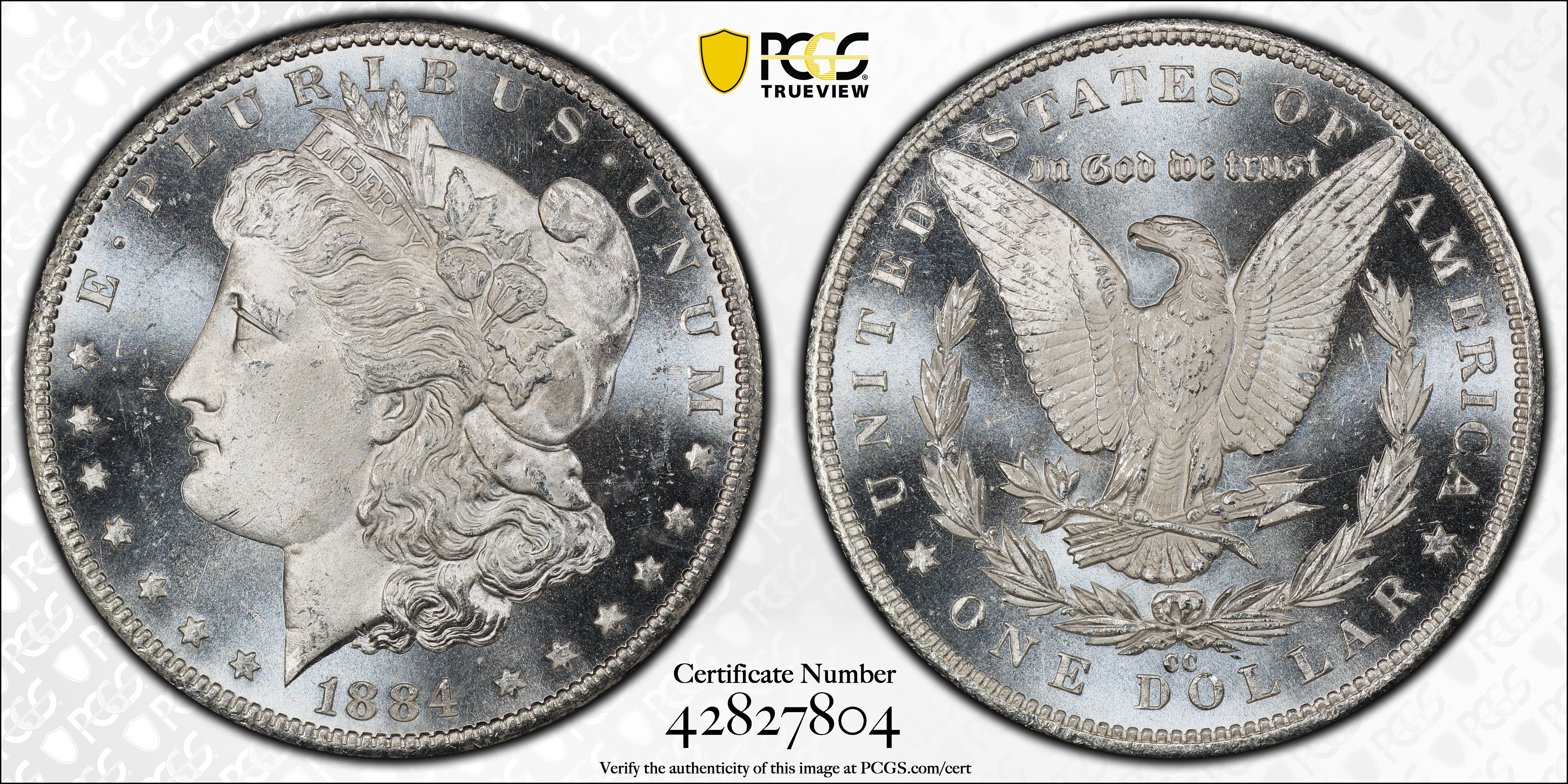 1884-CC $1, PL MS66PL 认证号42827804, PCGS号7153