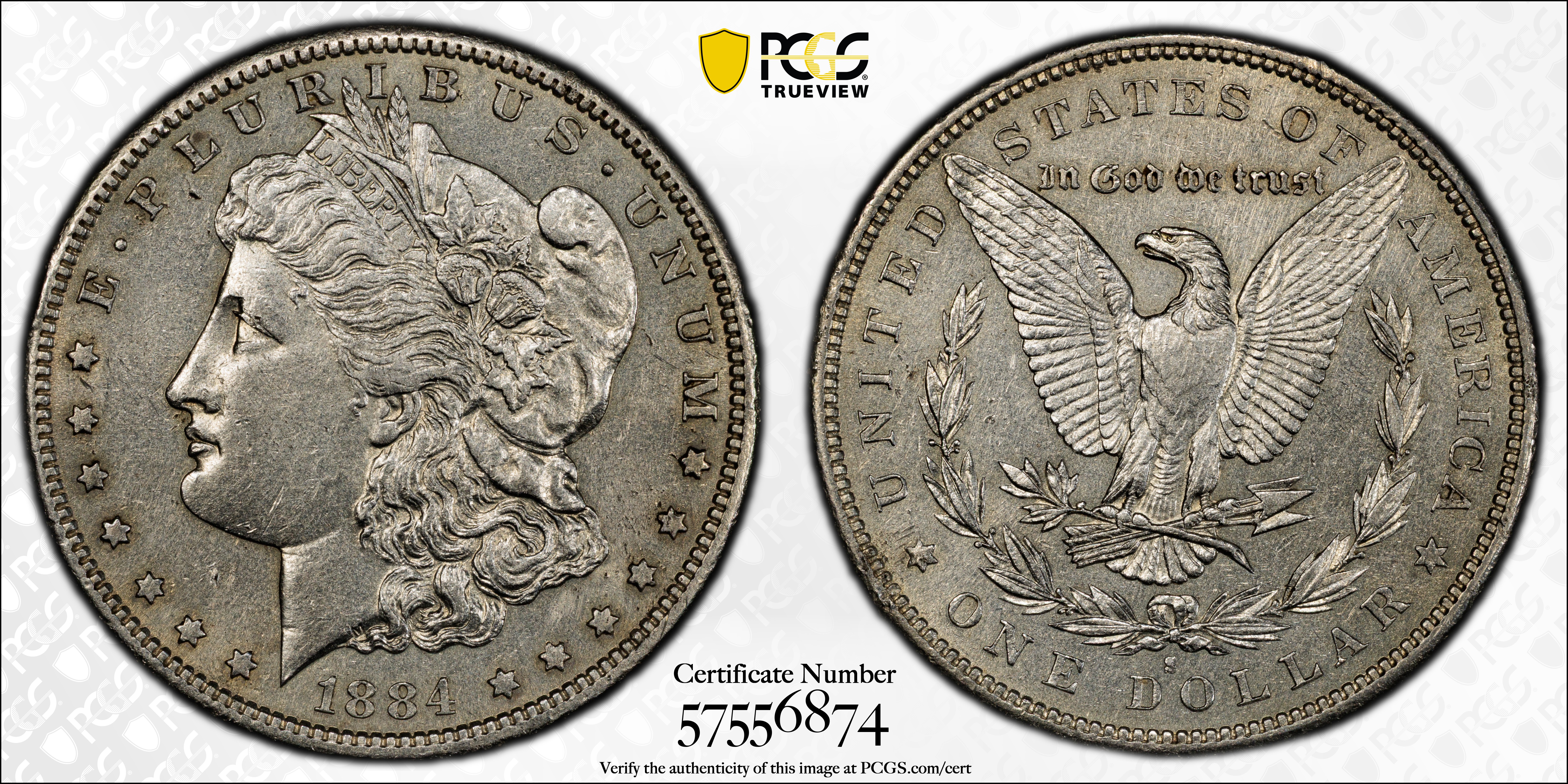 1884-S $1 N1 认证号57556874, PCGS号7156
