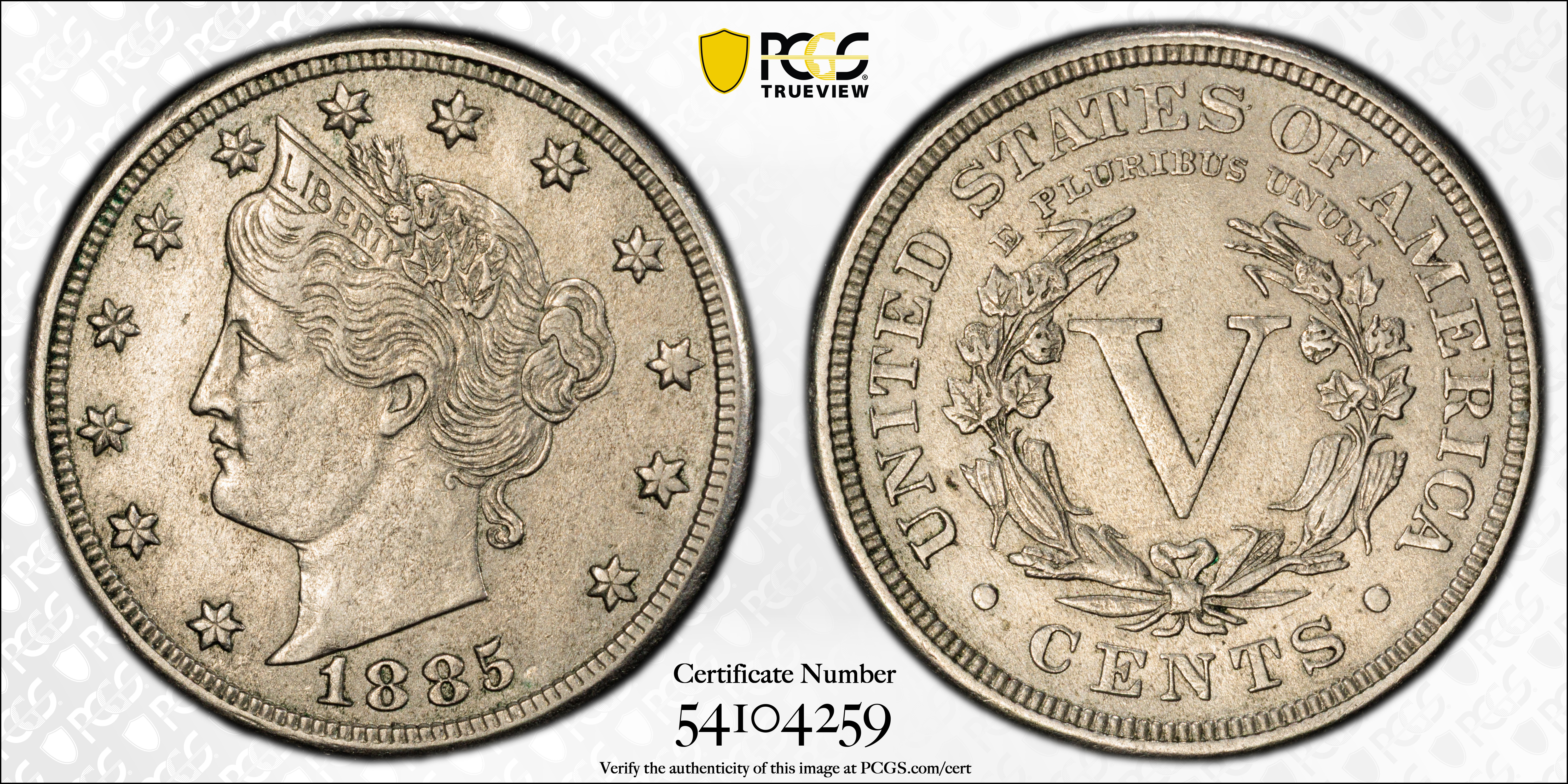 1885 5C AU53 认证号54104259, PCGS号3846