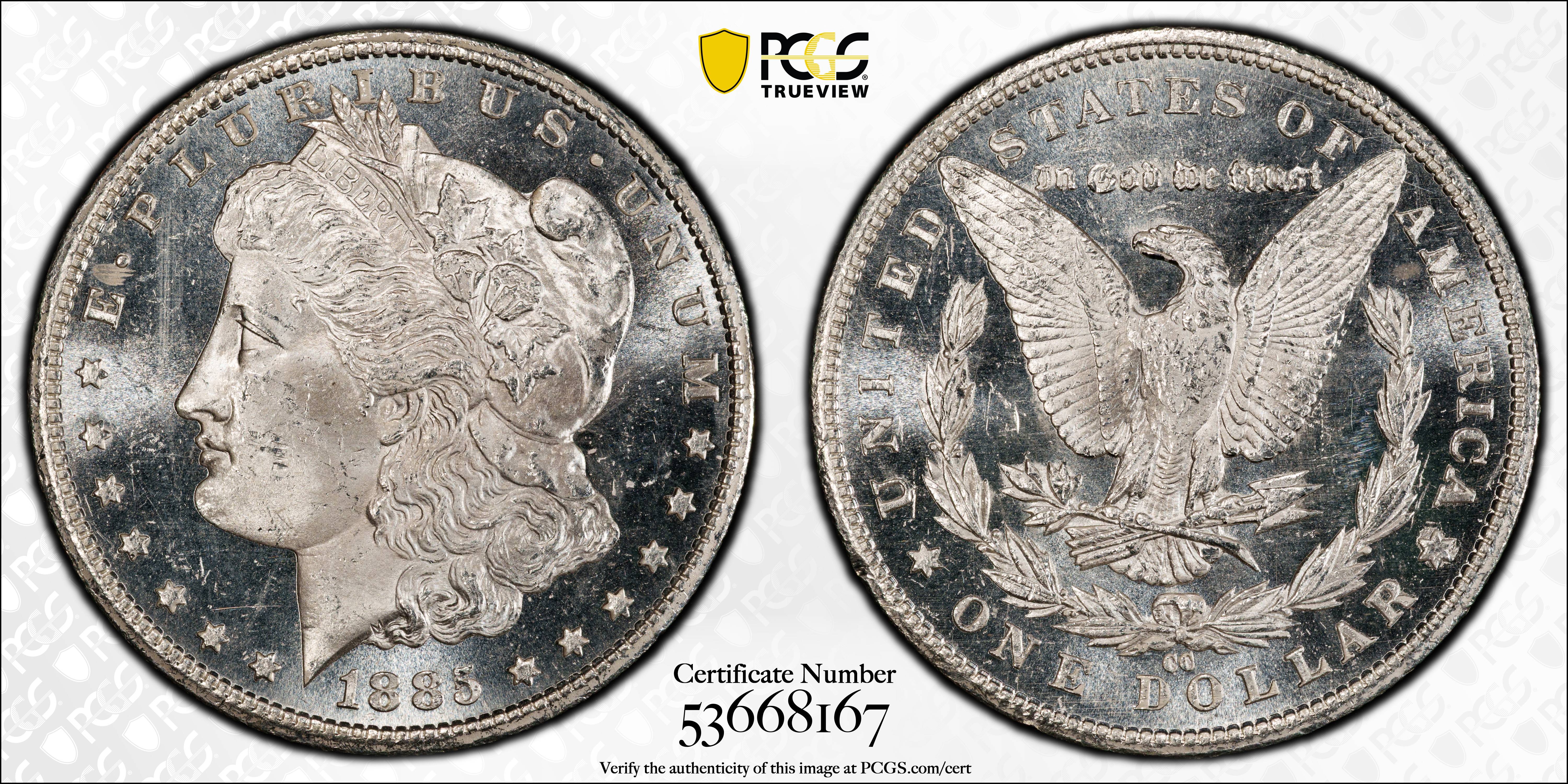1885-CC $1, PL MS64PL 认证号53668167, PCGS号7161