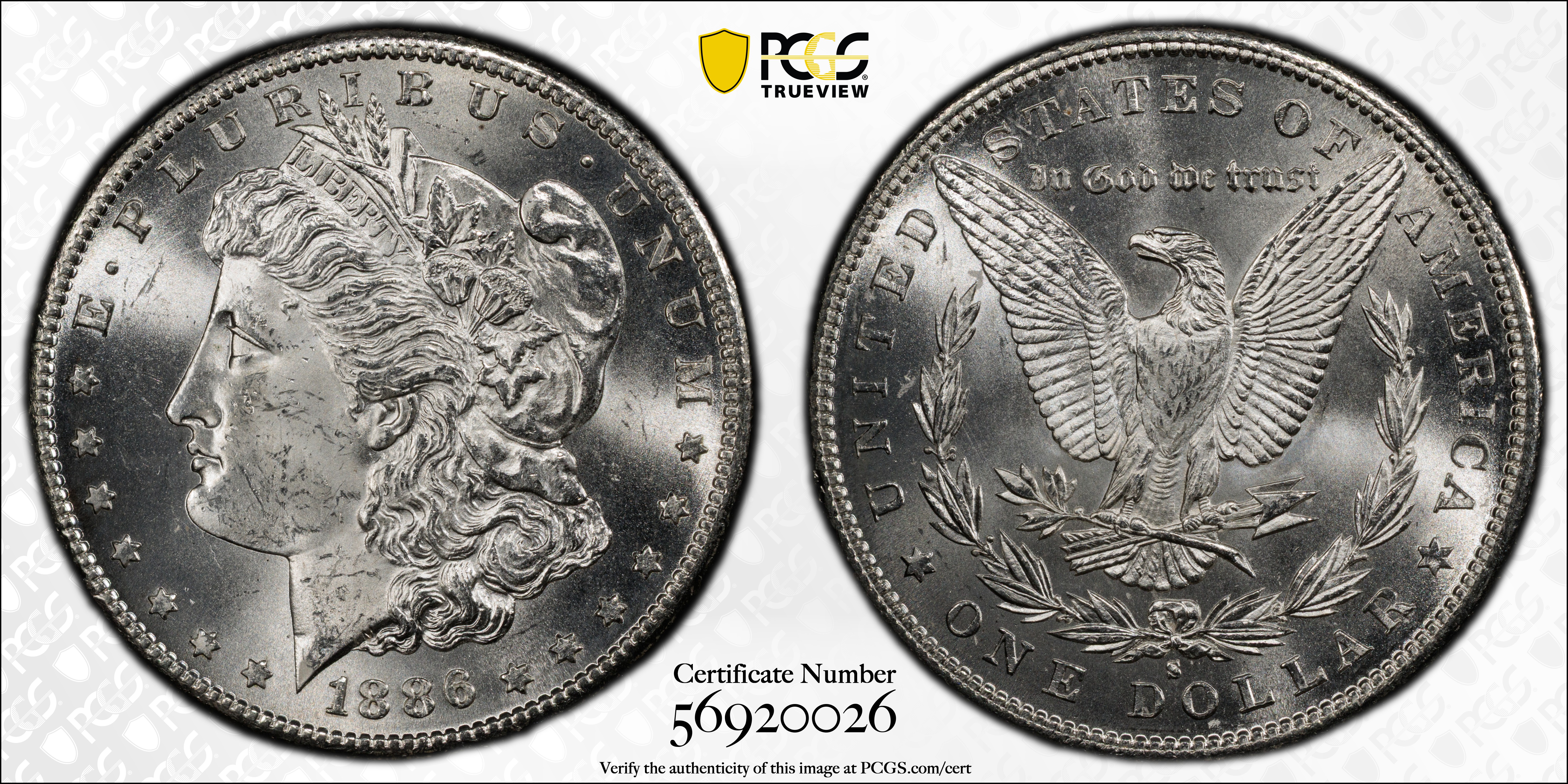 1886-S $1 MS64 认证号56920026, PCGS号7170