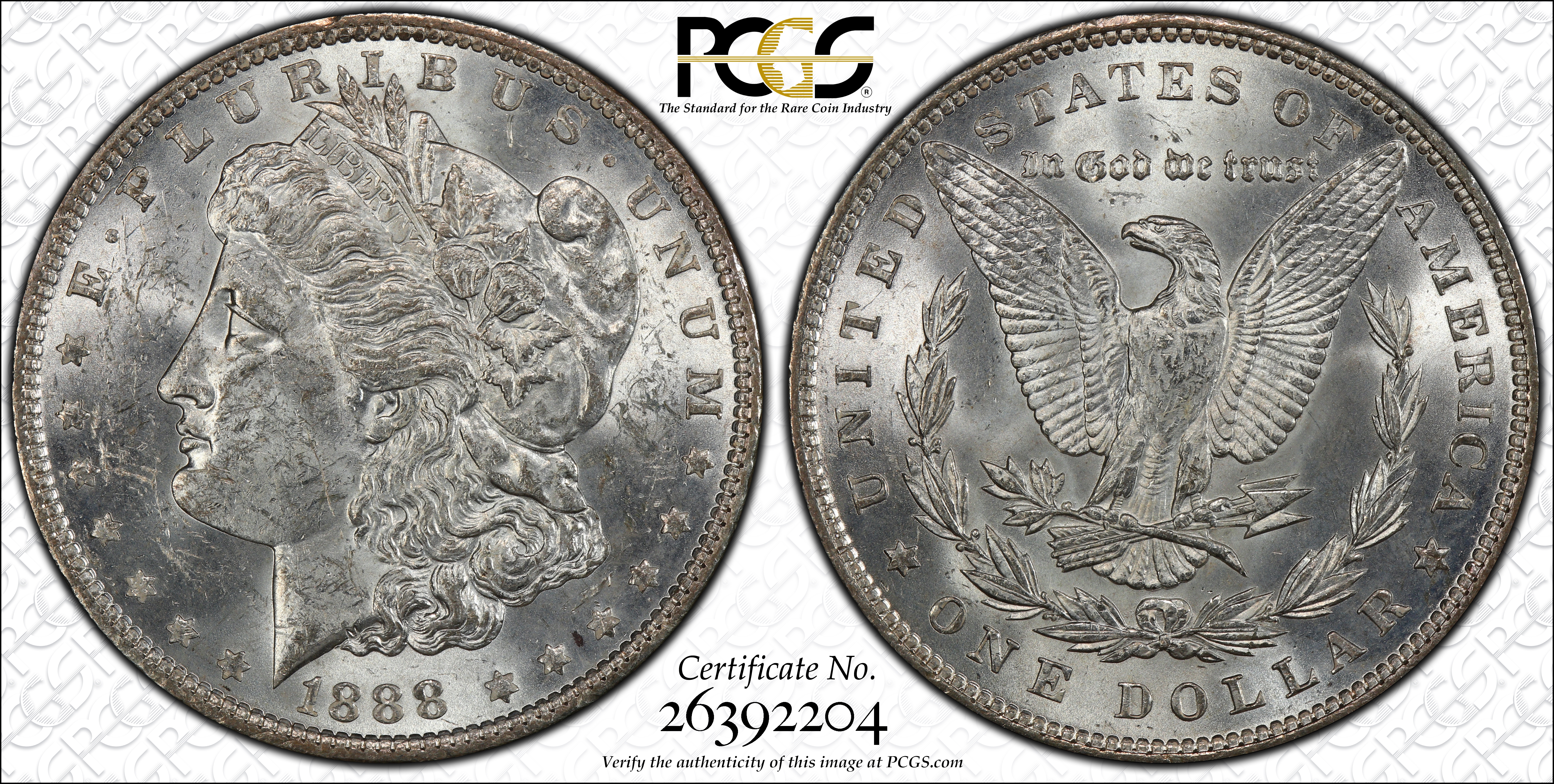1888 $1 VAM 7 Doubled Reverse HOT 50 MS62 认证号26392204, PCGS号134007
