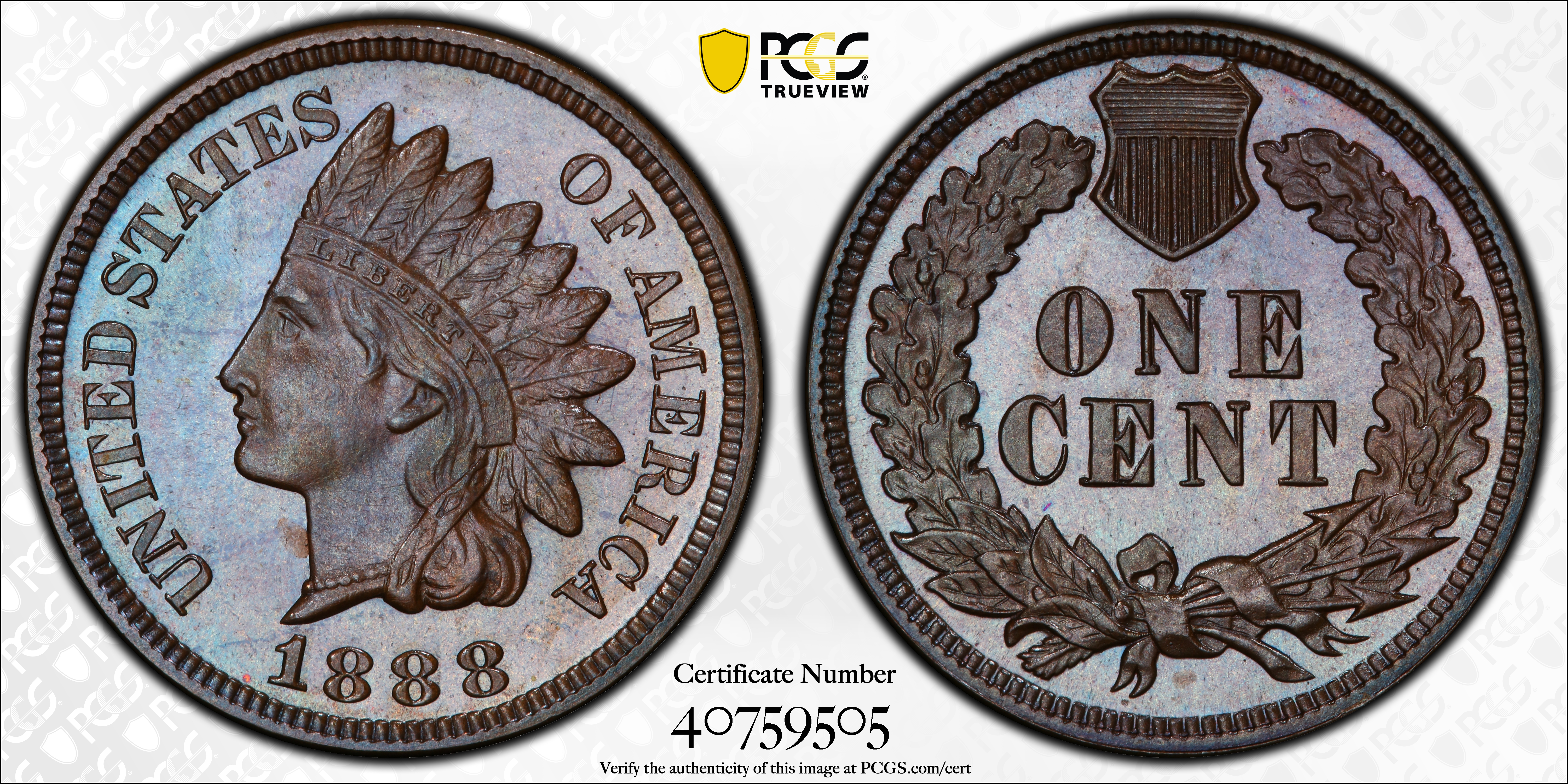 1888 1C, BN PR66BN 认证号40759505, PCGS号2351