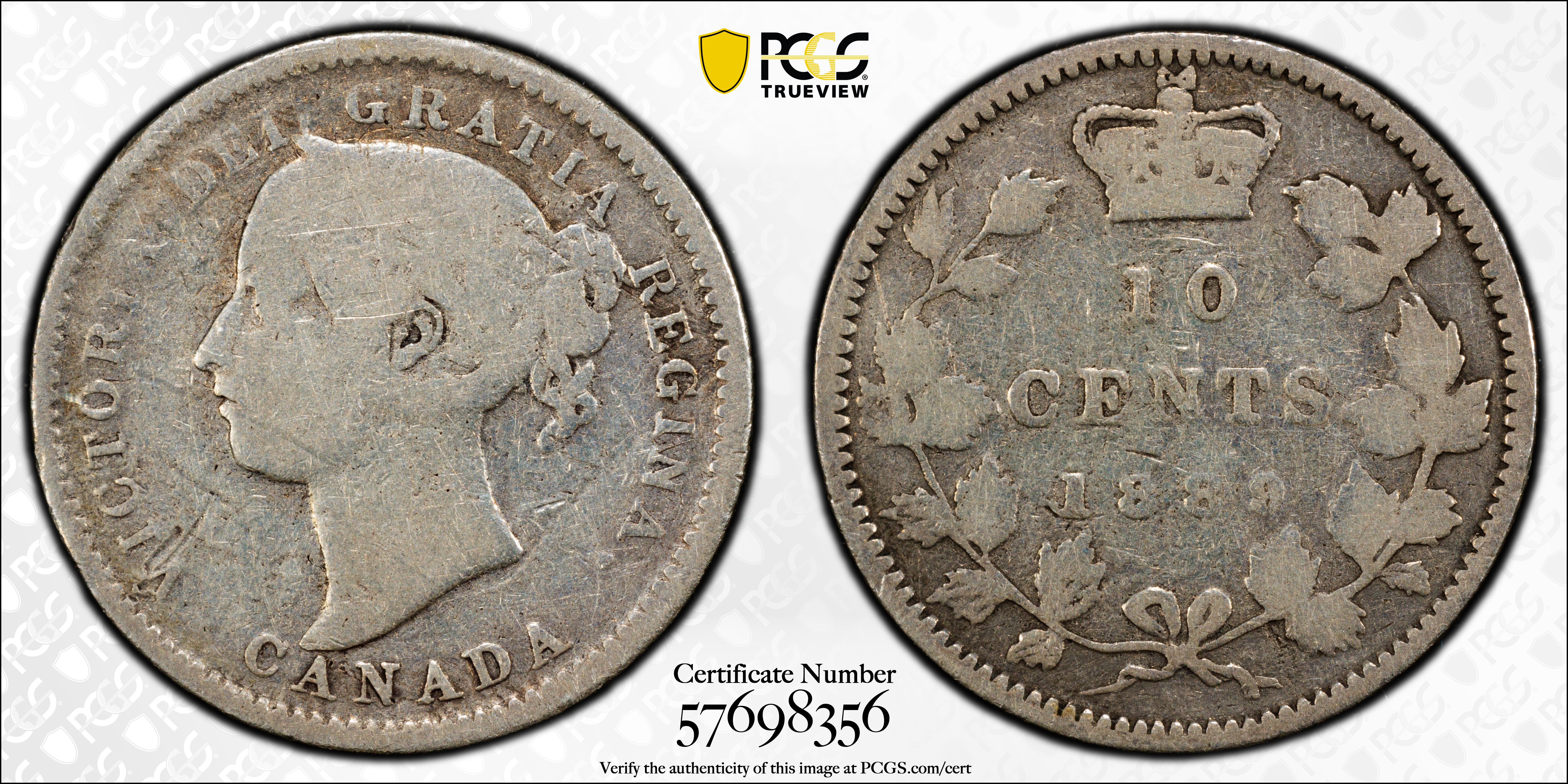 1889 10C VG10 认证号57698356, PCGS号31347