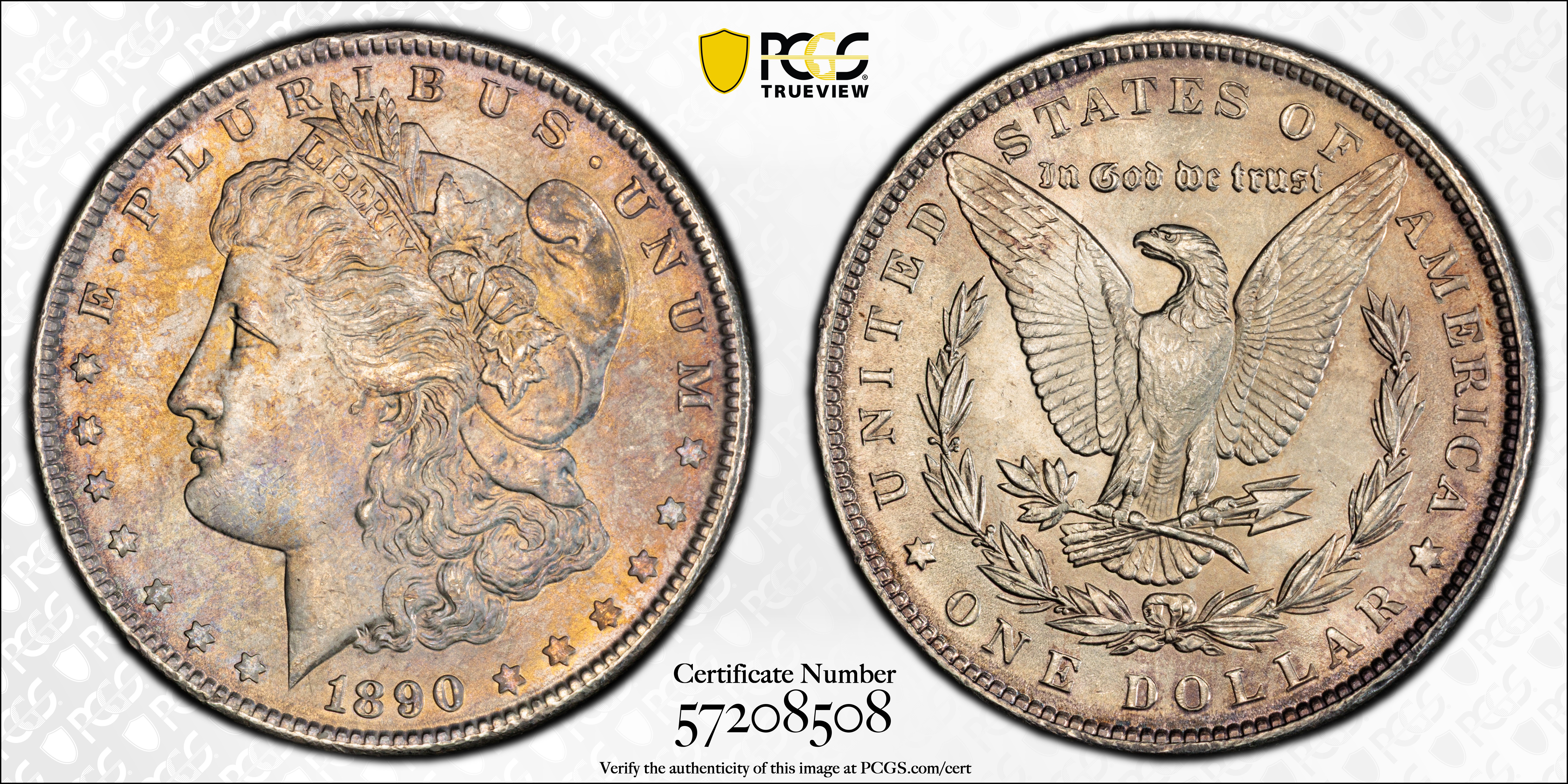 1890 $1 MS65 认证号57208508, PCGS号7196