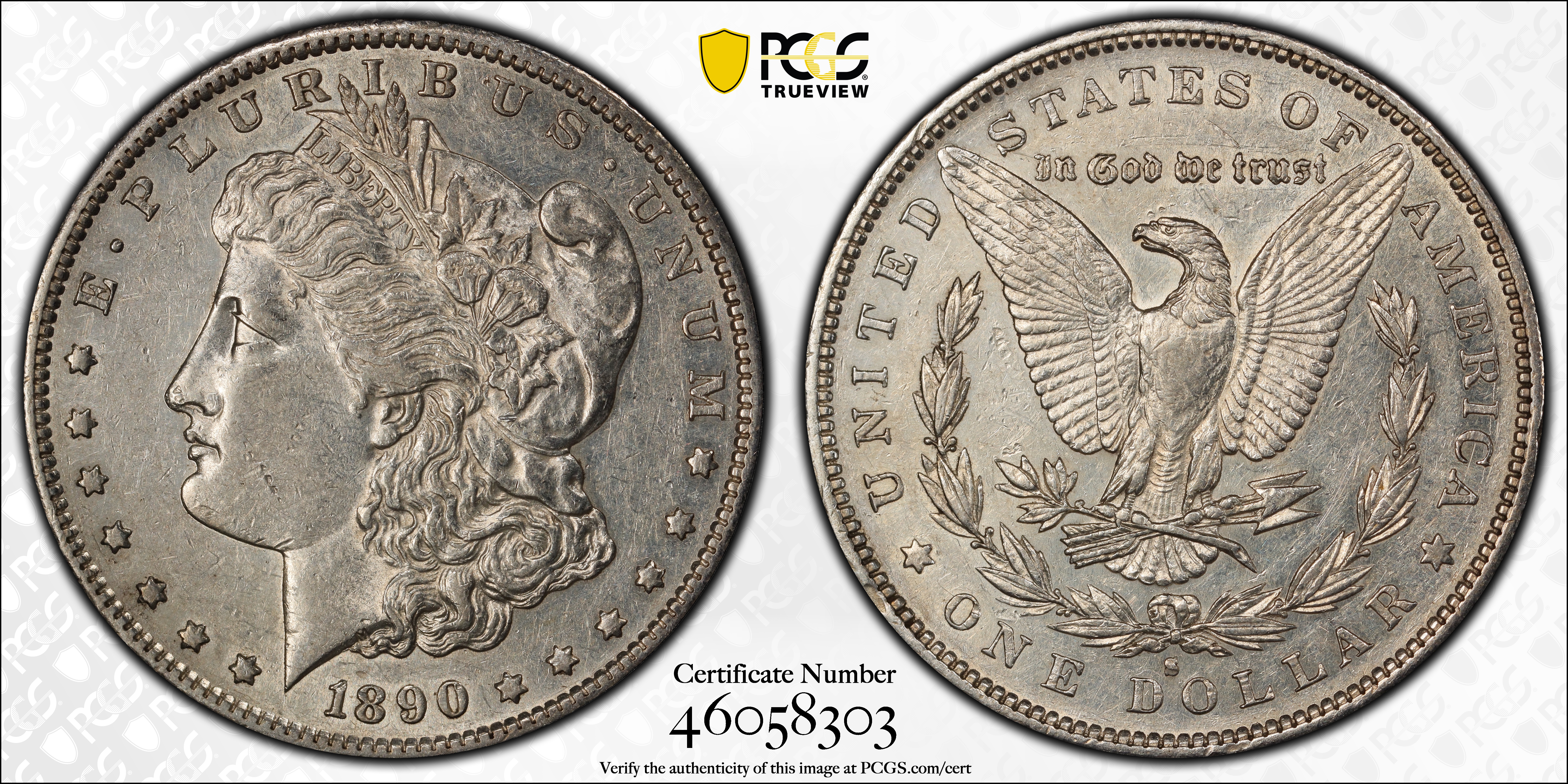 1890-S $1 XF45 认证号46058303, PCGS号7202