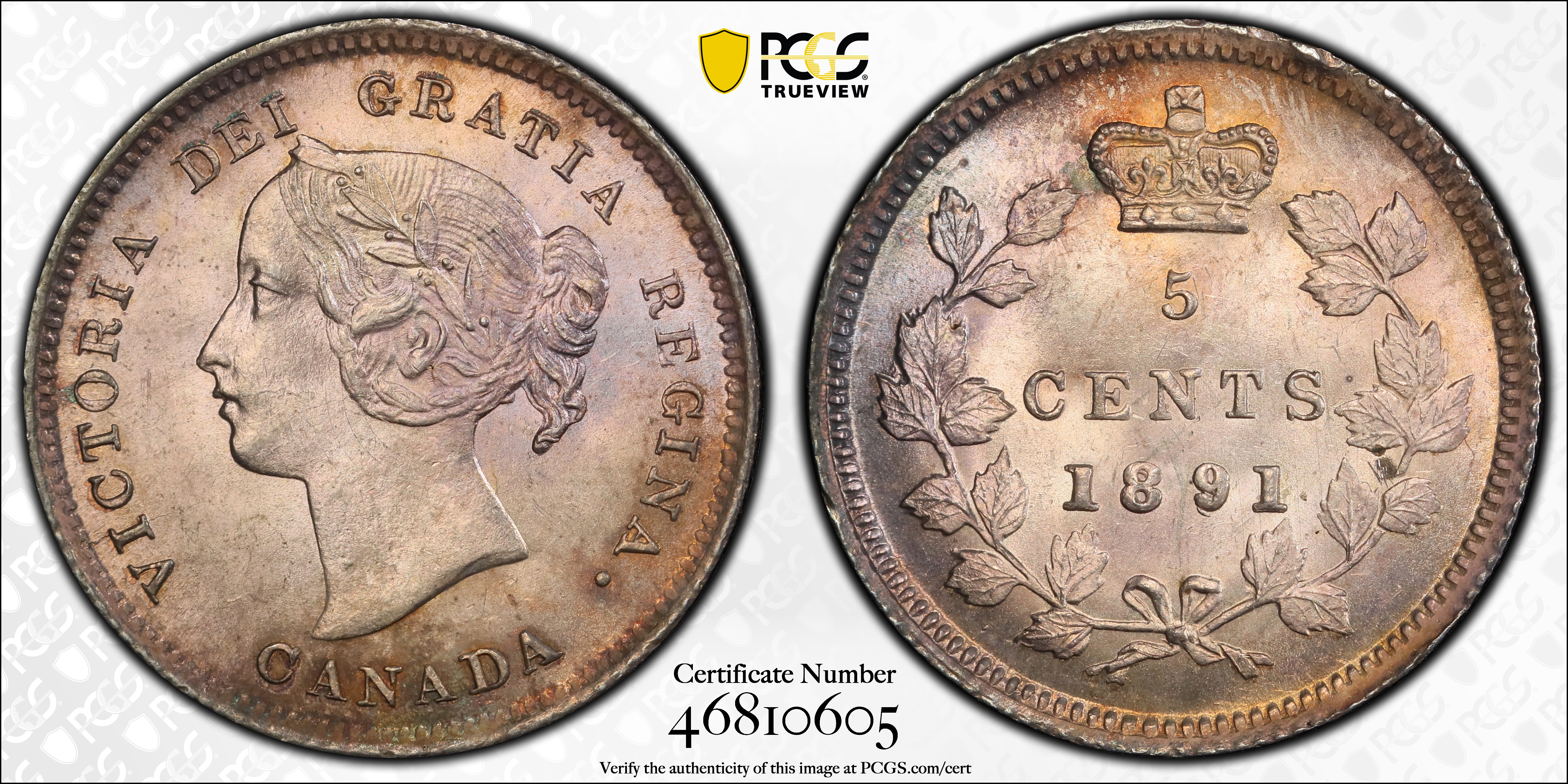 1891 5C Wide Date, 8/8, 9/9 MS65 认证号46810605, PCGS号920012