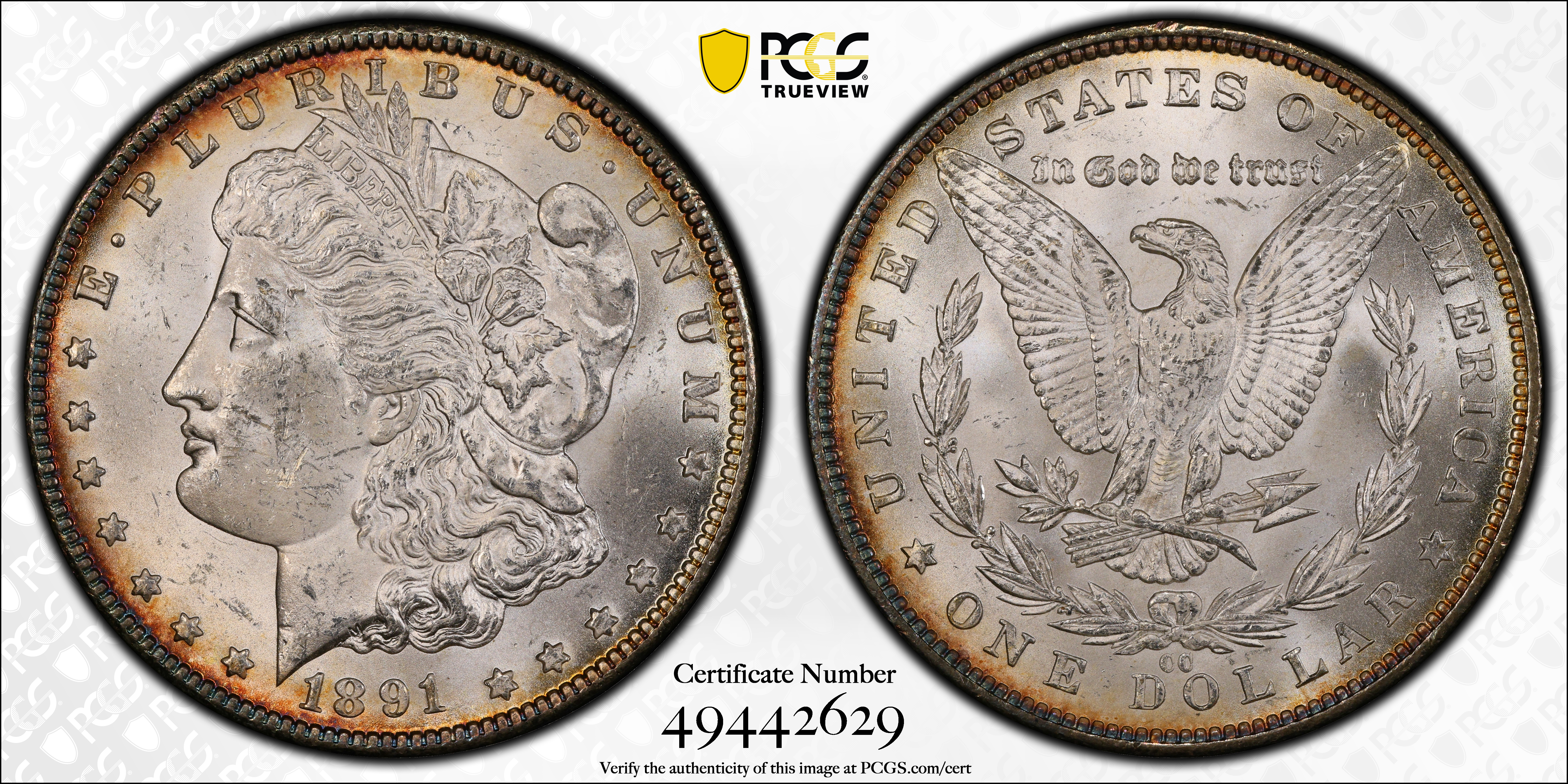 1891-CC $1 MS62+ 认证号49442629, PCGS号7206
