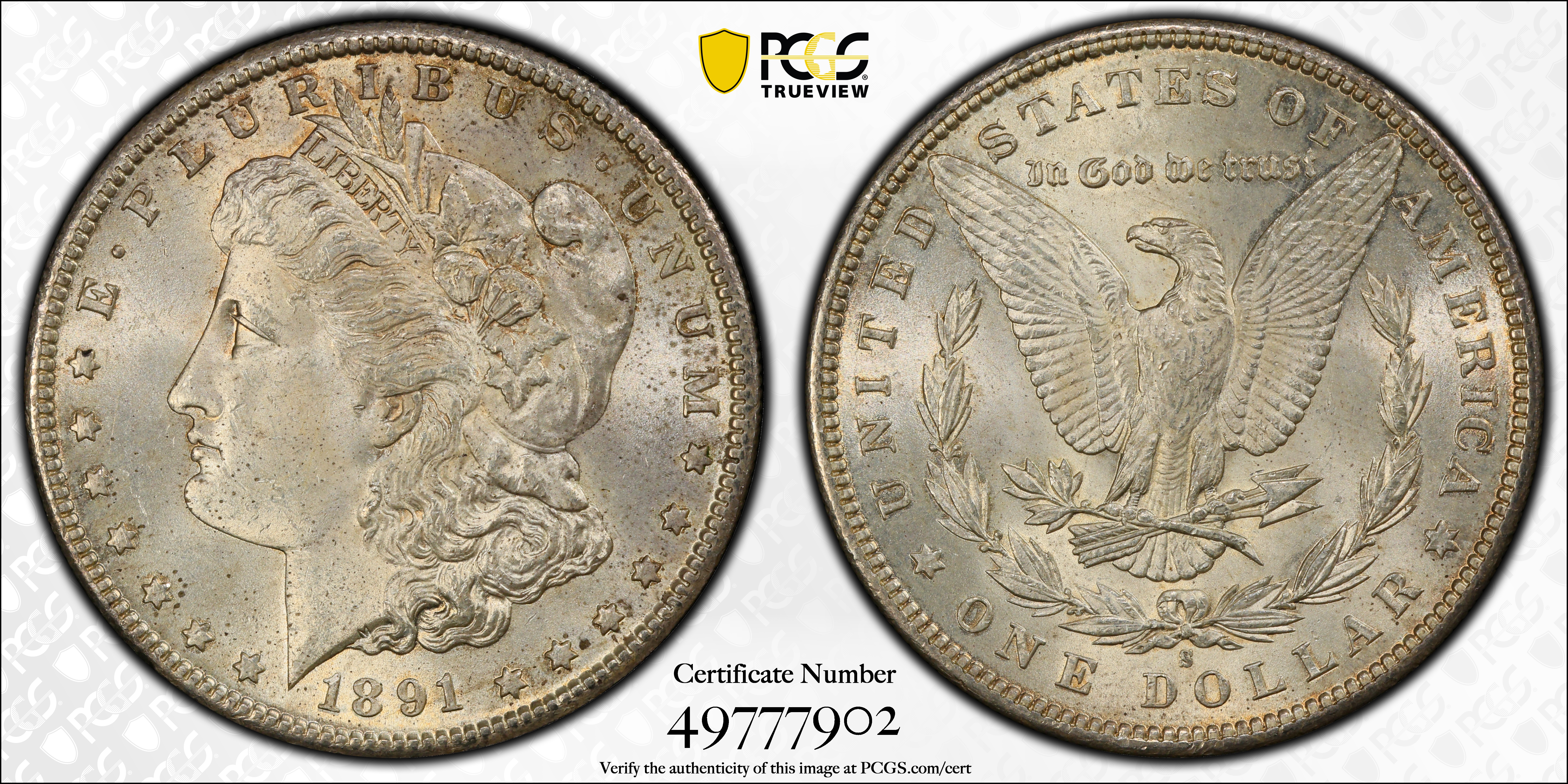 1891-S $1 MS64 认证号49777902, PCGS号7210