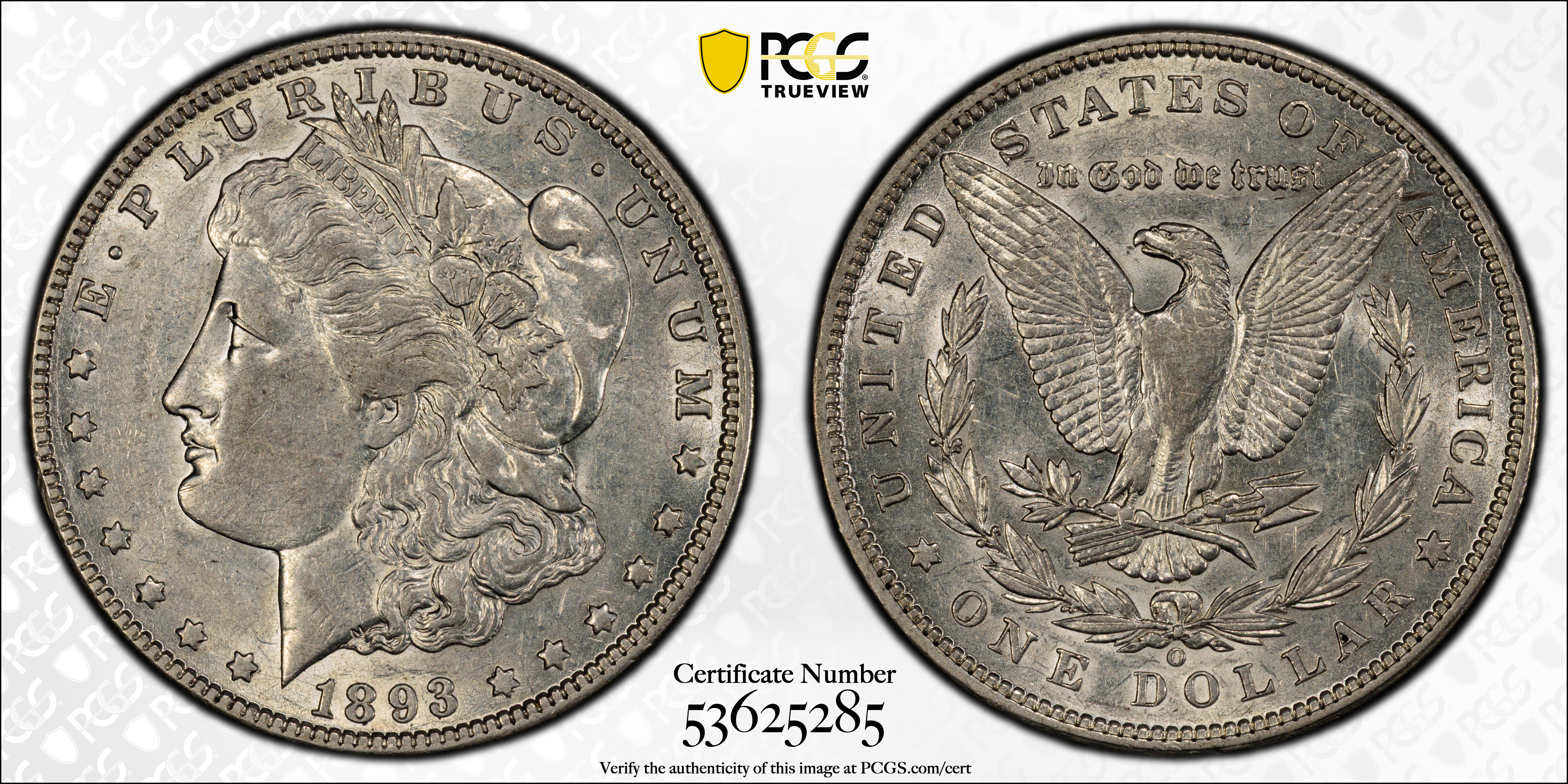 1893-O $1 AU50 认证号53625285, PCGS号7224