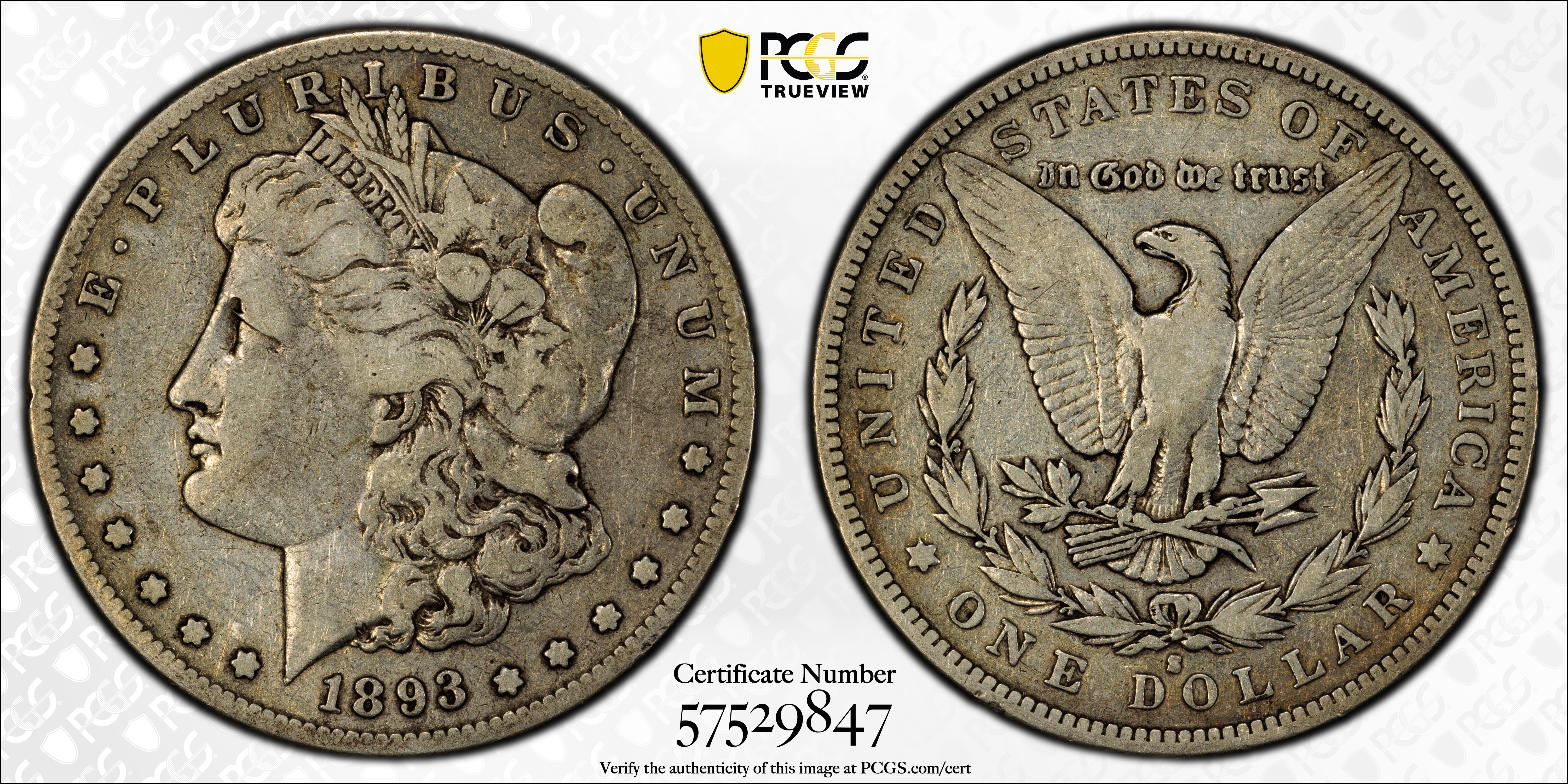 1893-S $1 F15 认证号57529847, PCGS号7226