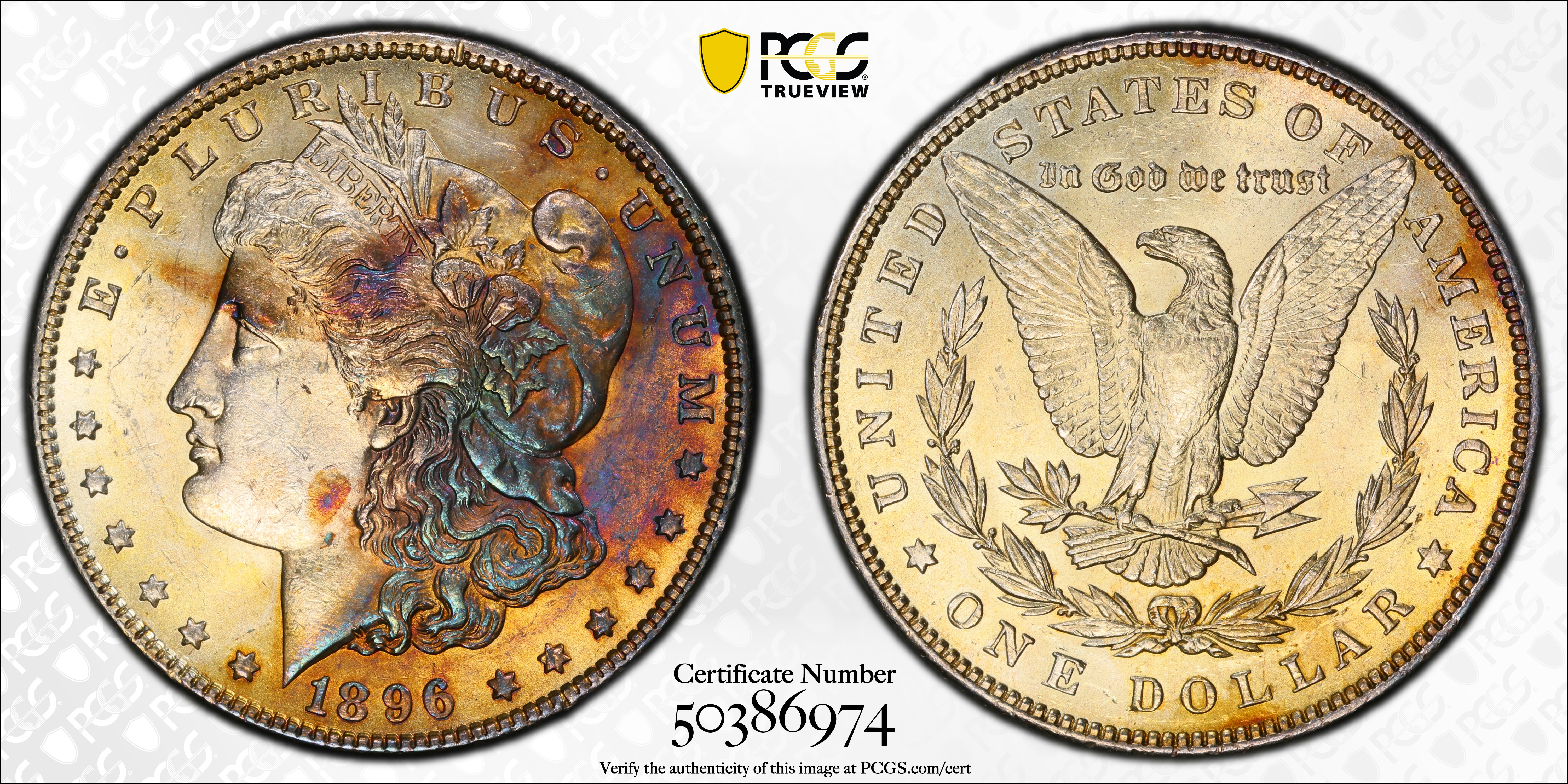 1896 $1 N1 认证号50386974, PCGS号7240
