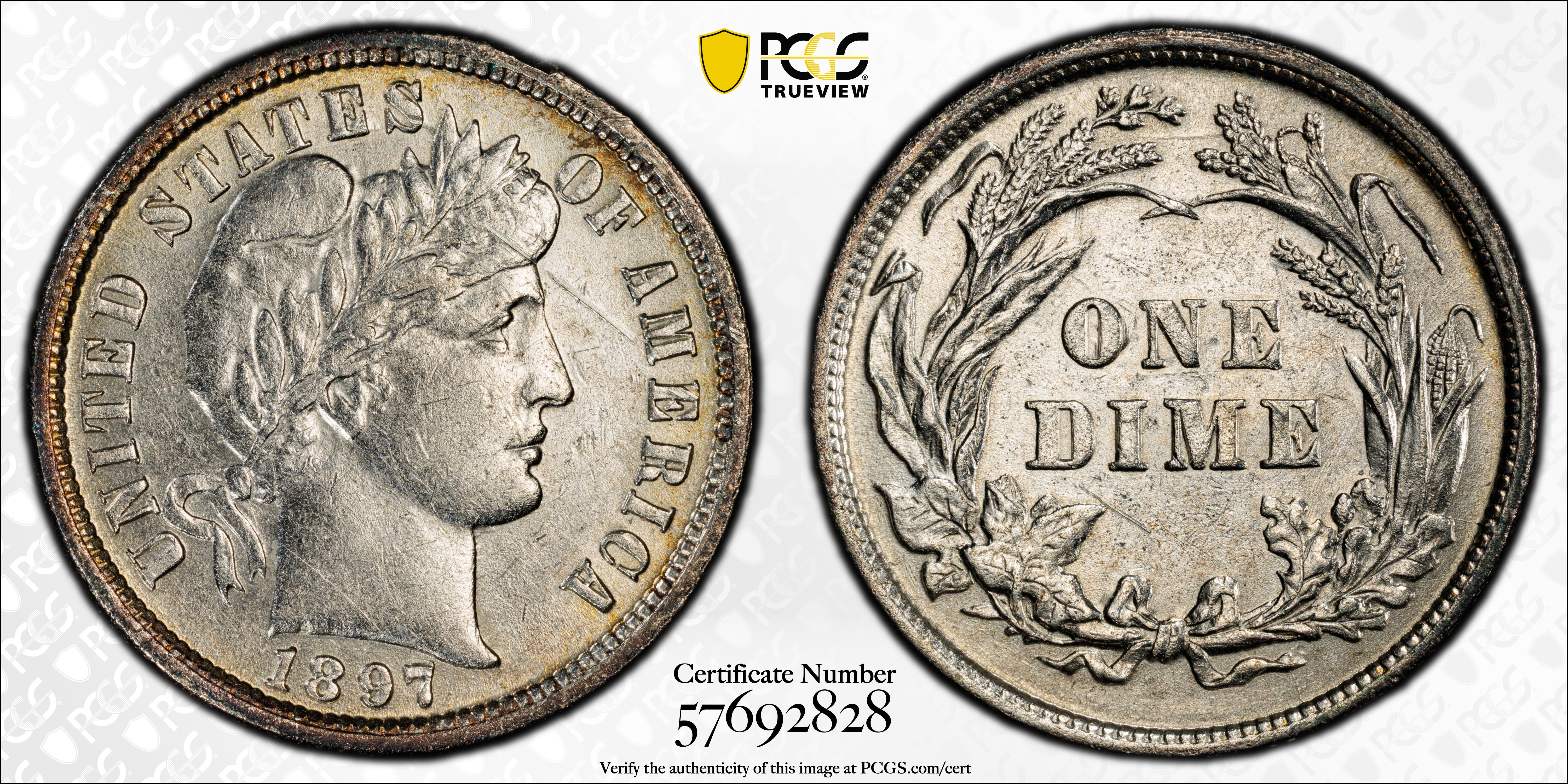 1897 10C N1 认证号57692828, PCGS号4812