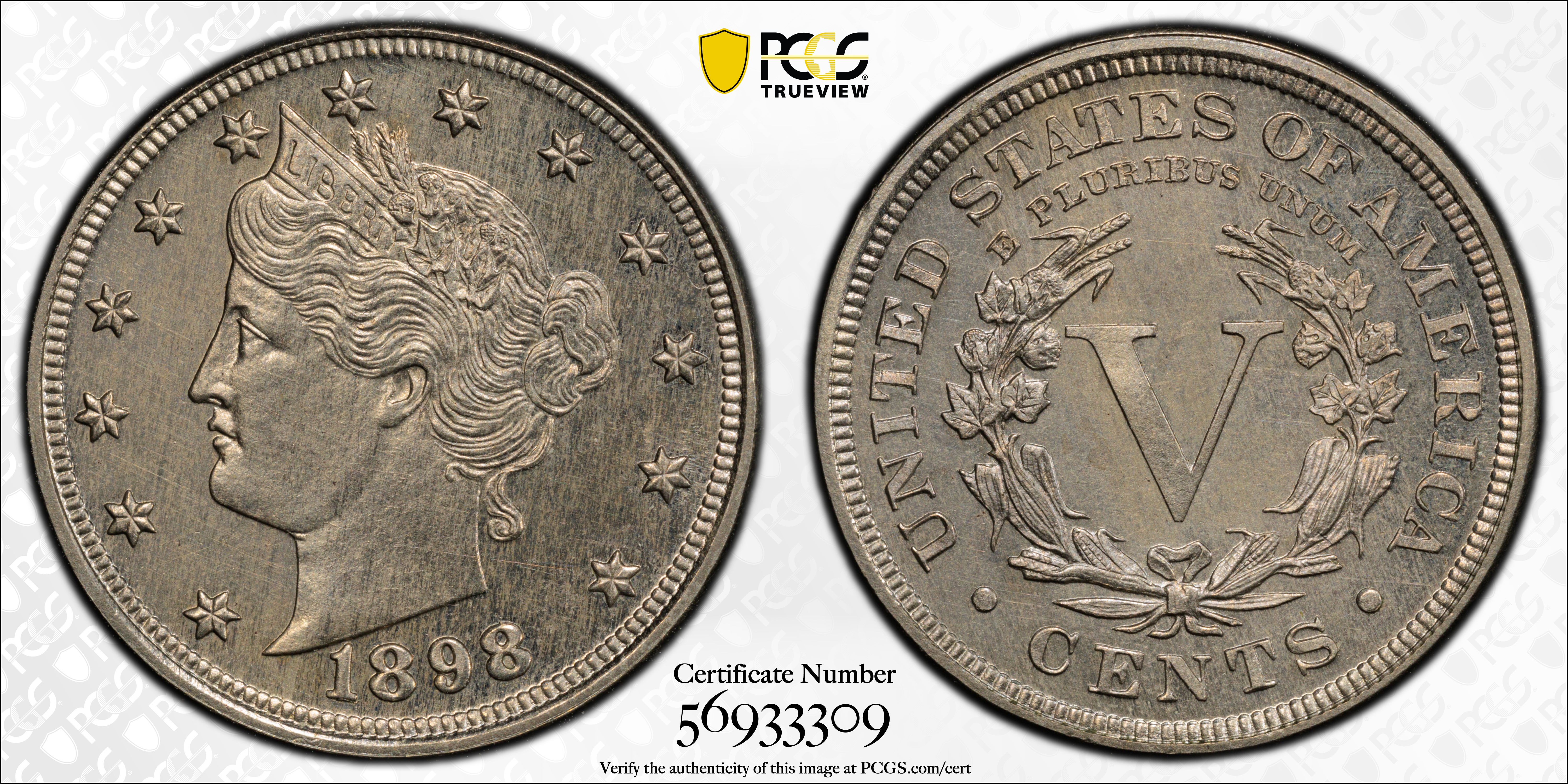 1898 5C PR63 认证号56933309, PCGS号3896