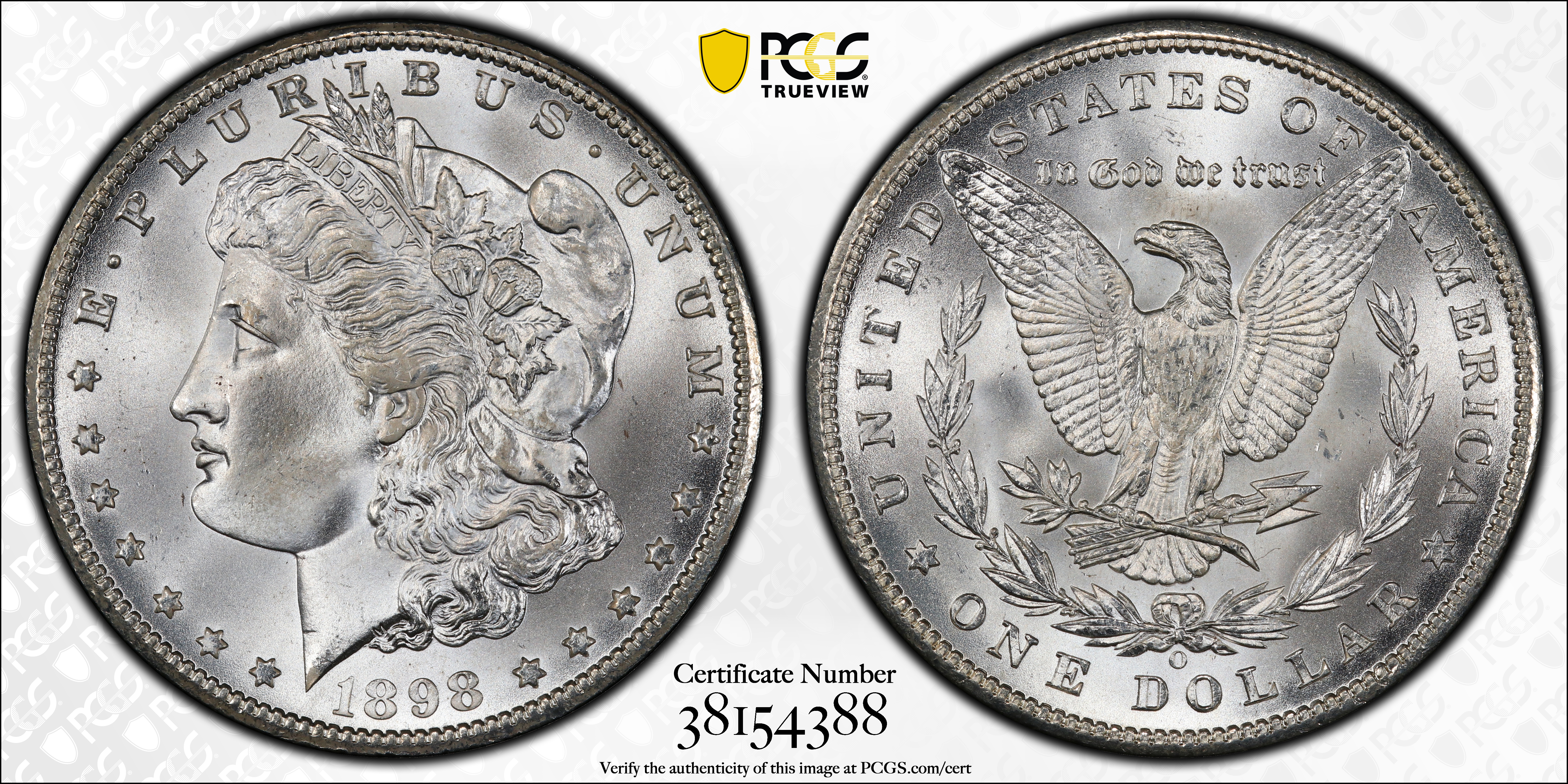 1898-O $1 MS67+ 认证号38154388, PCGS号7254