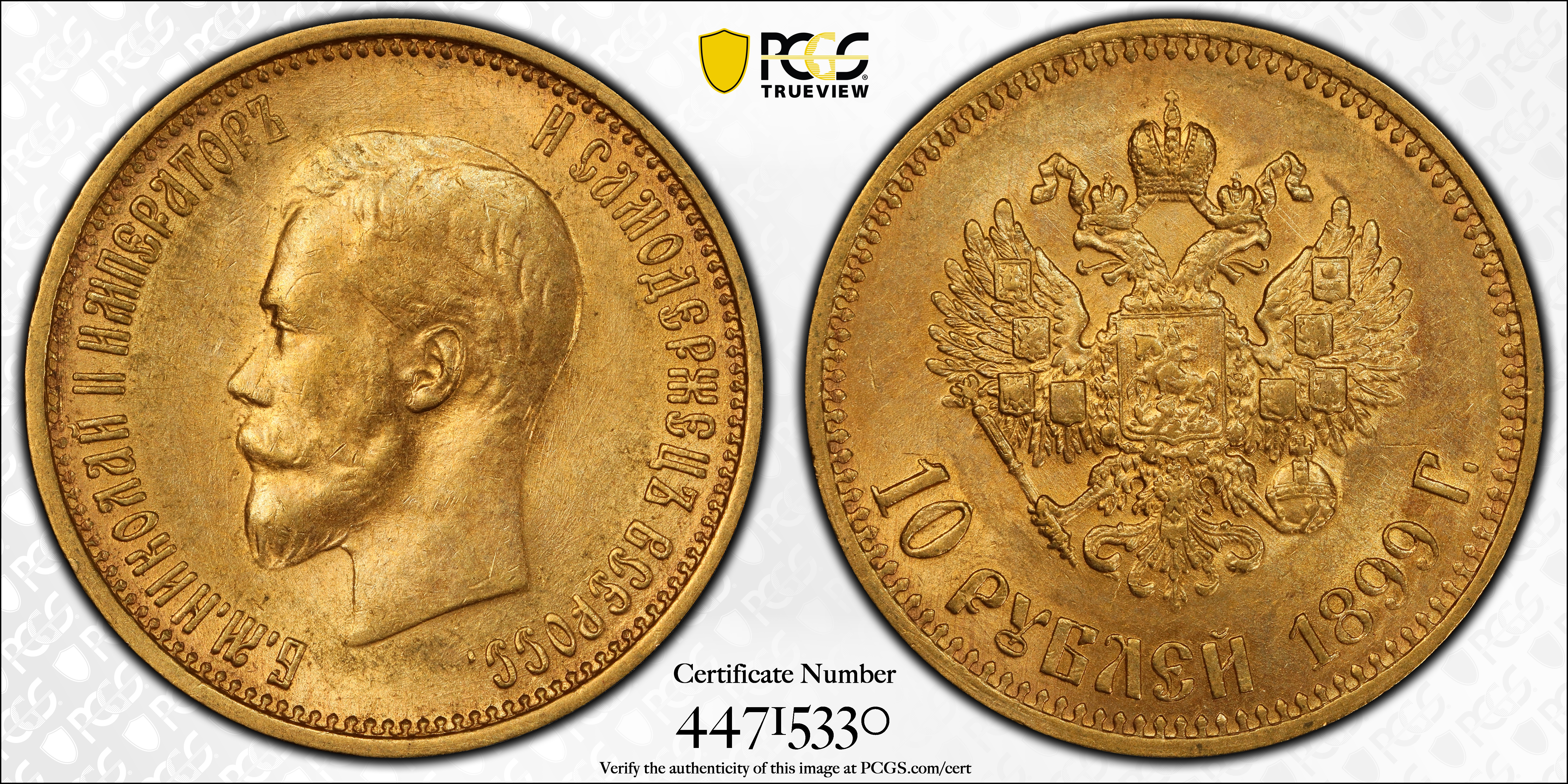 1899 АГ 10 Rbl Bit-4 AU58 认证号44715330, PCGS号930372