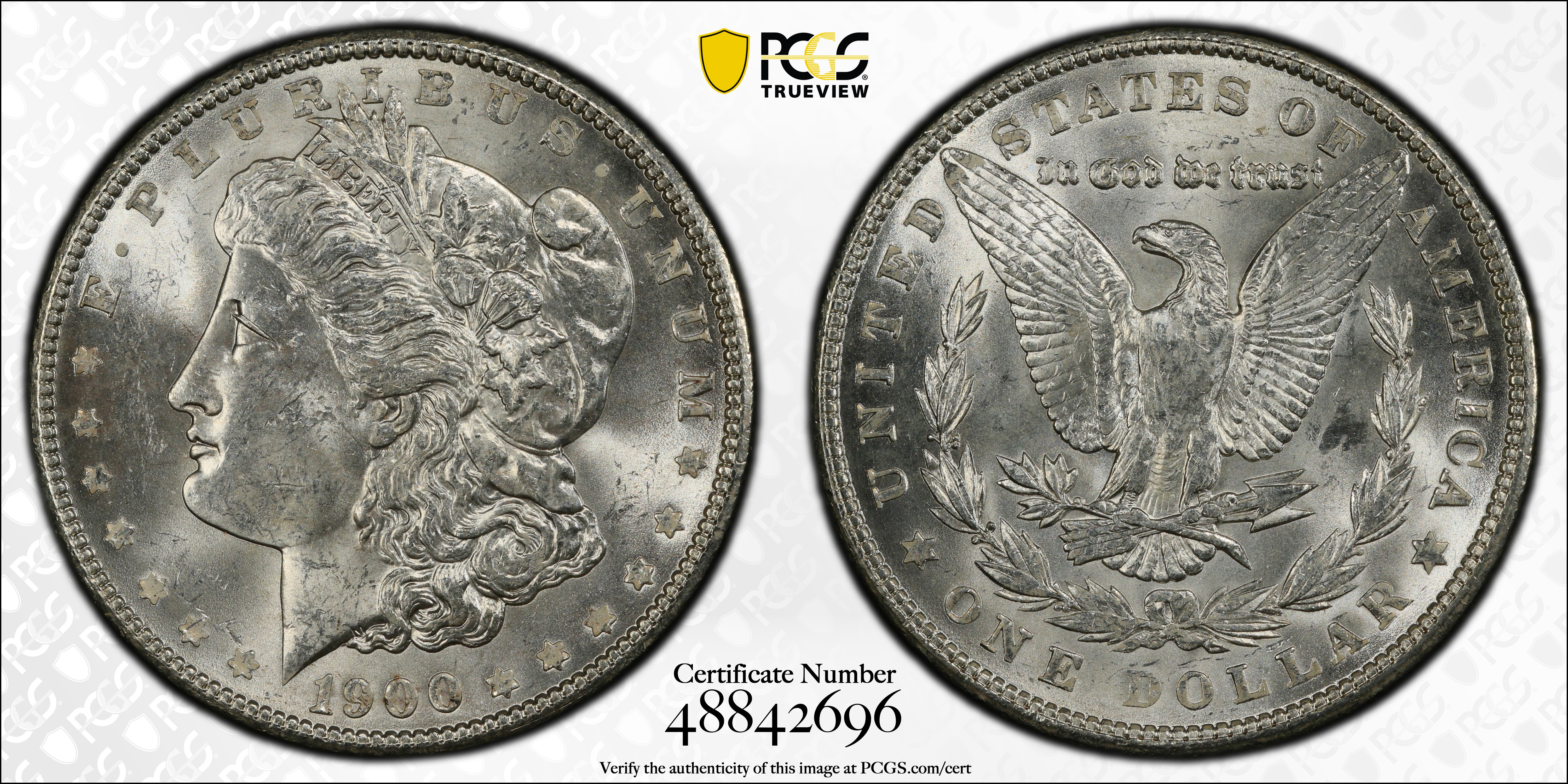 1900 $1 VAM 24 Doubled Wing TOP 100 MS63 认证号48842696, PCGS号133954