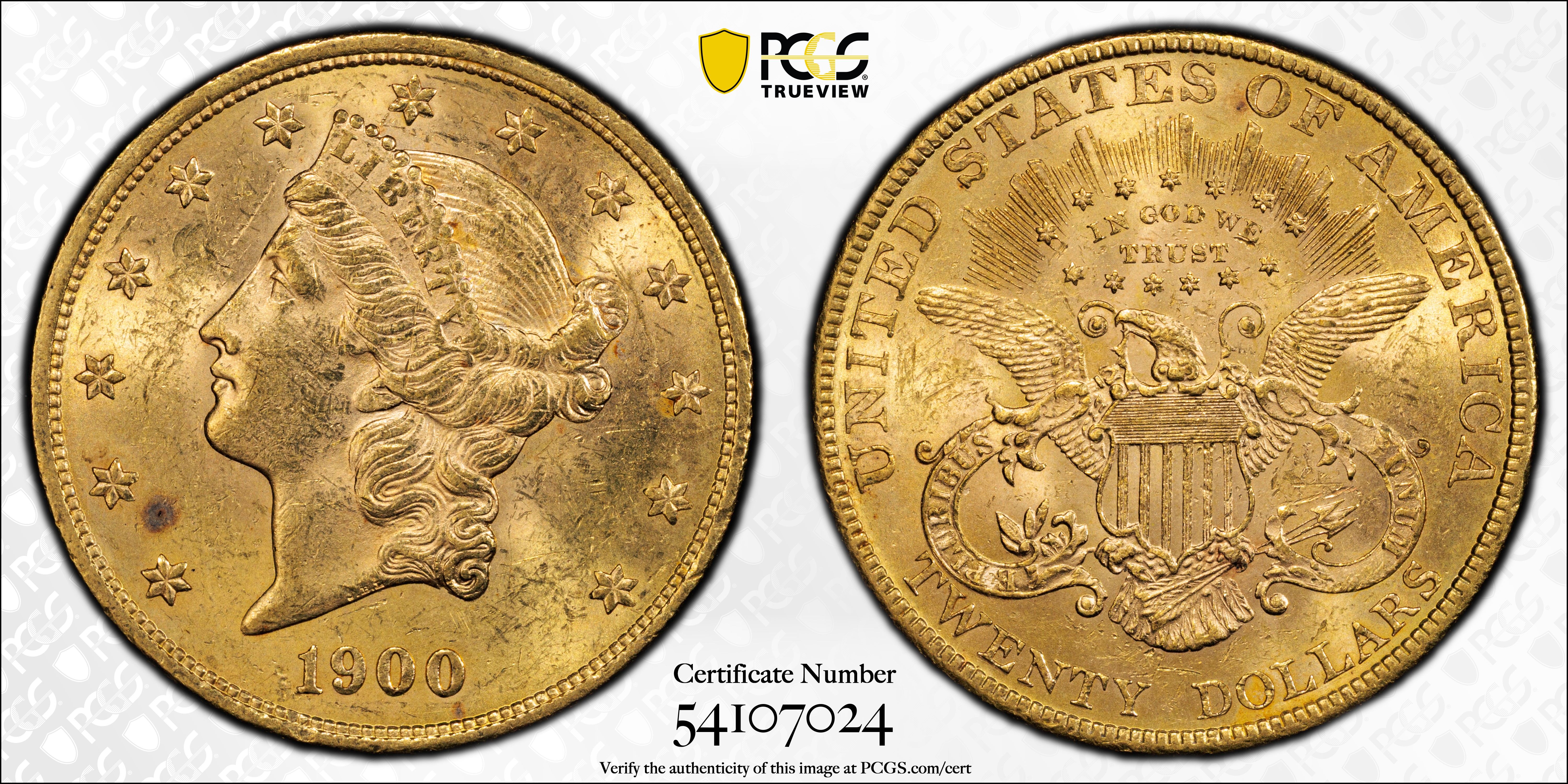 1900 $20 MS61 认证号54107024, PCGS号9037
