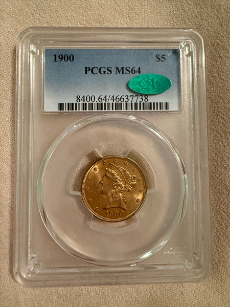 1900 $5 MS64 认证号46637738, PCGS号8400