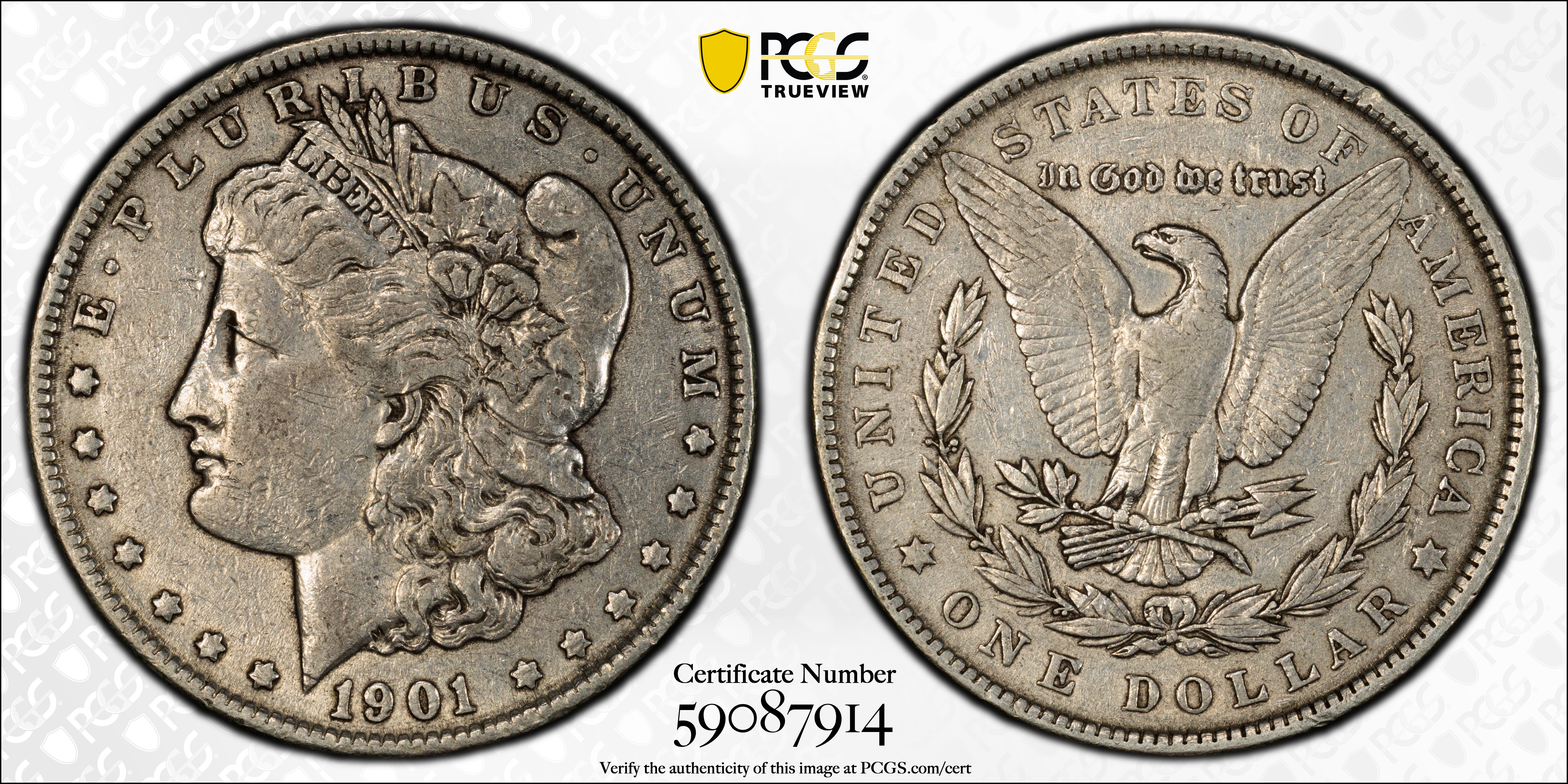 1901 $1 VF30 认证号59087914, PCGS号7272