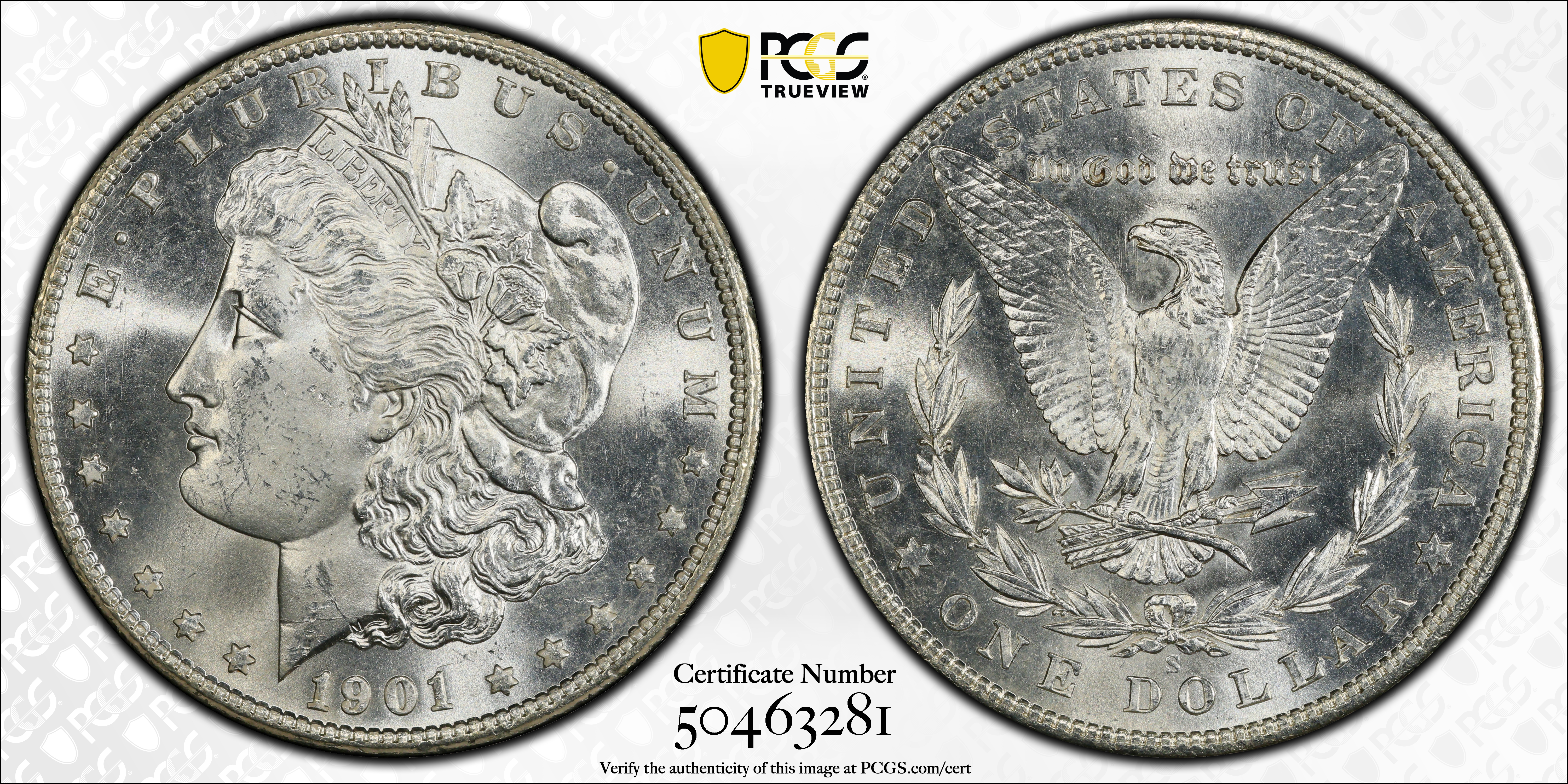 1901-S $1 MS64 认证号50463281, PCGS号7276