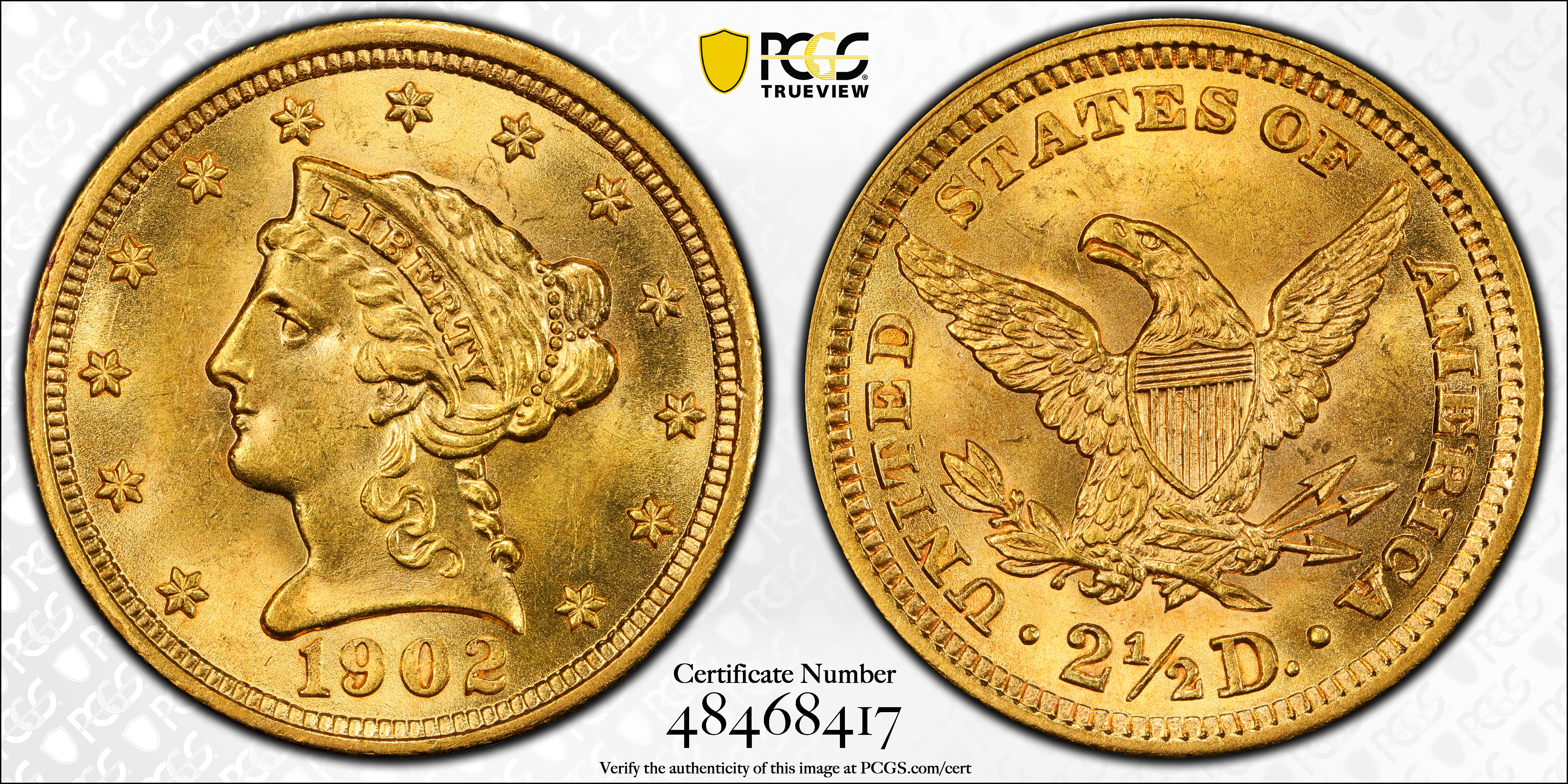 1902 $2.50 MS64 认证号48468417, PCGS号7854