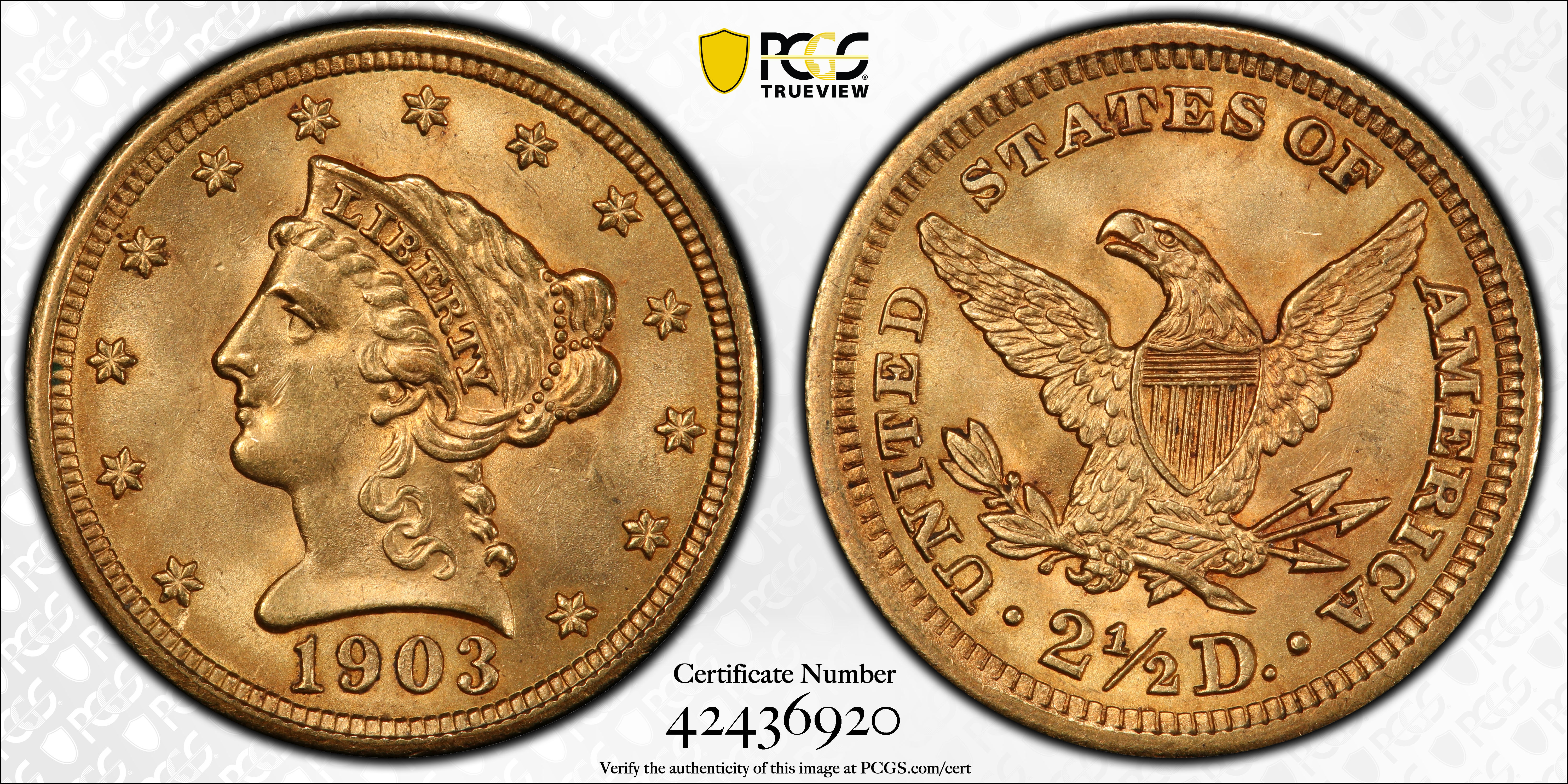 1903 $2.50 MS64 认证号42436920, PCGS号7855