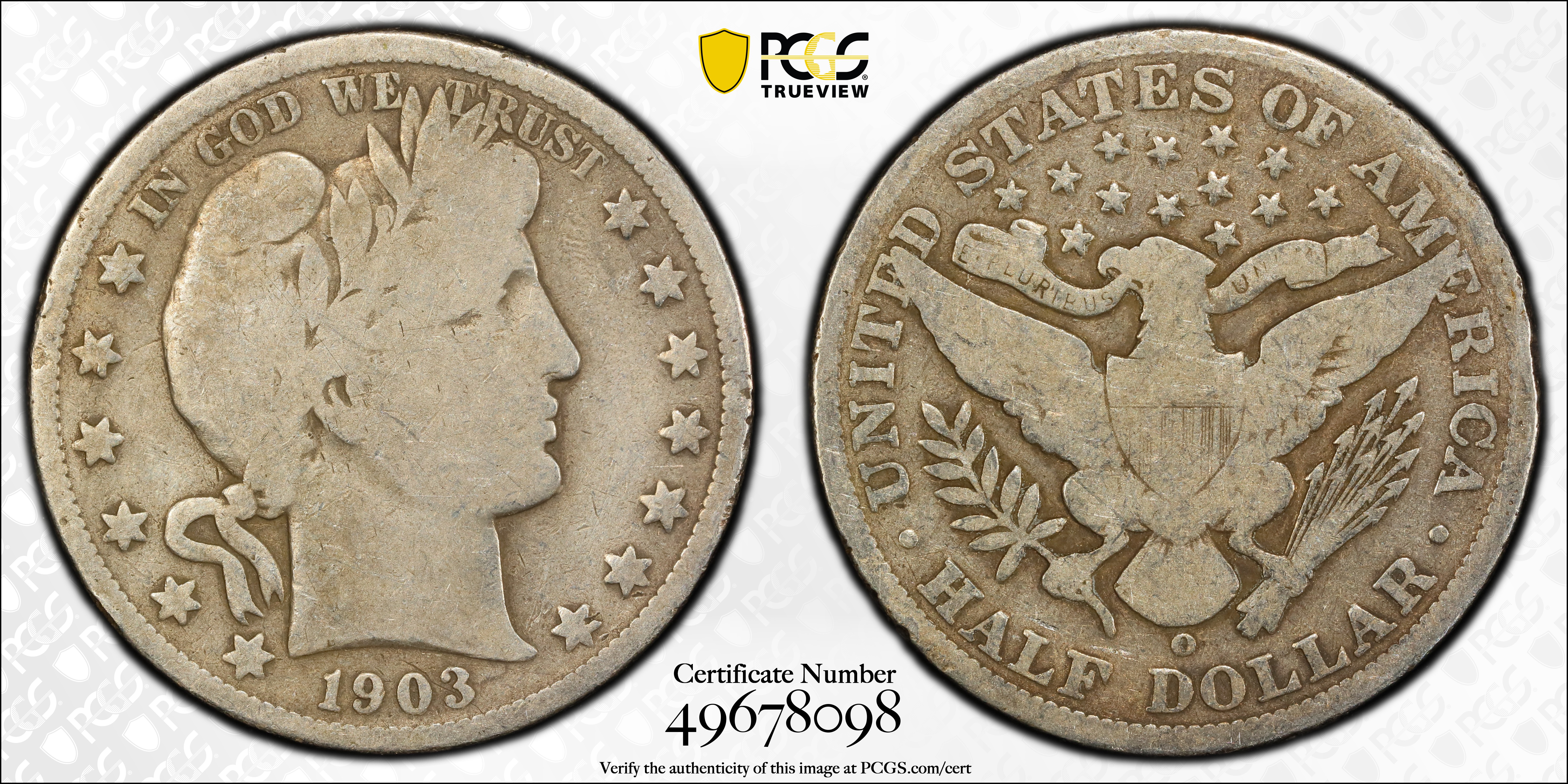 Among the O-Mint Barber Half Dollars, the 1903-O is one of the tougher issues. It is not as scarce as the 1901-O, 1902-O, and 1904-O, but it is either equal to or more rare than most of the other issues. The strike on the 1903-O is never full and there may be some weakness on the upper right shield lines, some of the obverse stars at lower right, on the eagle's right talon (viewer's right), or Liberty's mouth. Akers was correct in stating that this date is better-struck than most of the othe O-Mint Barber Half Dollars, but that does not mean it is anywhere near as strong as most of the Philadelphia and S-Mint issues. Notably well-struck examples include the former Norweb-Price-Duckor (PCGS MS67), a PCGS MS66 of unknown pedigree), and the PCGS MS65+ in the "Scrotag" Collection on the PCGS Set Registry.