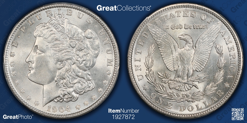 The typically encountered 1904 dollar will win no awards for quality. Many have indifferent lustre, and the striking is apt to be average (even after allowing for the normal feathers on the C-4 reverse). The majority of pieces are in lower grade levels such as MS-60, 61, and 62.