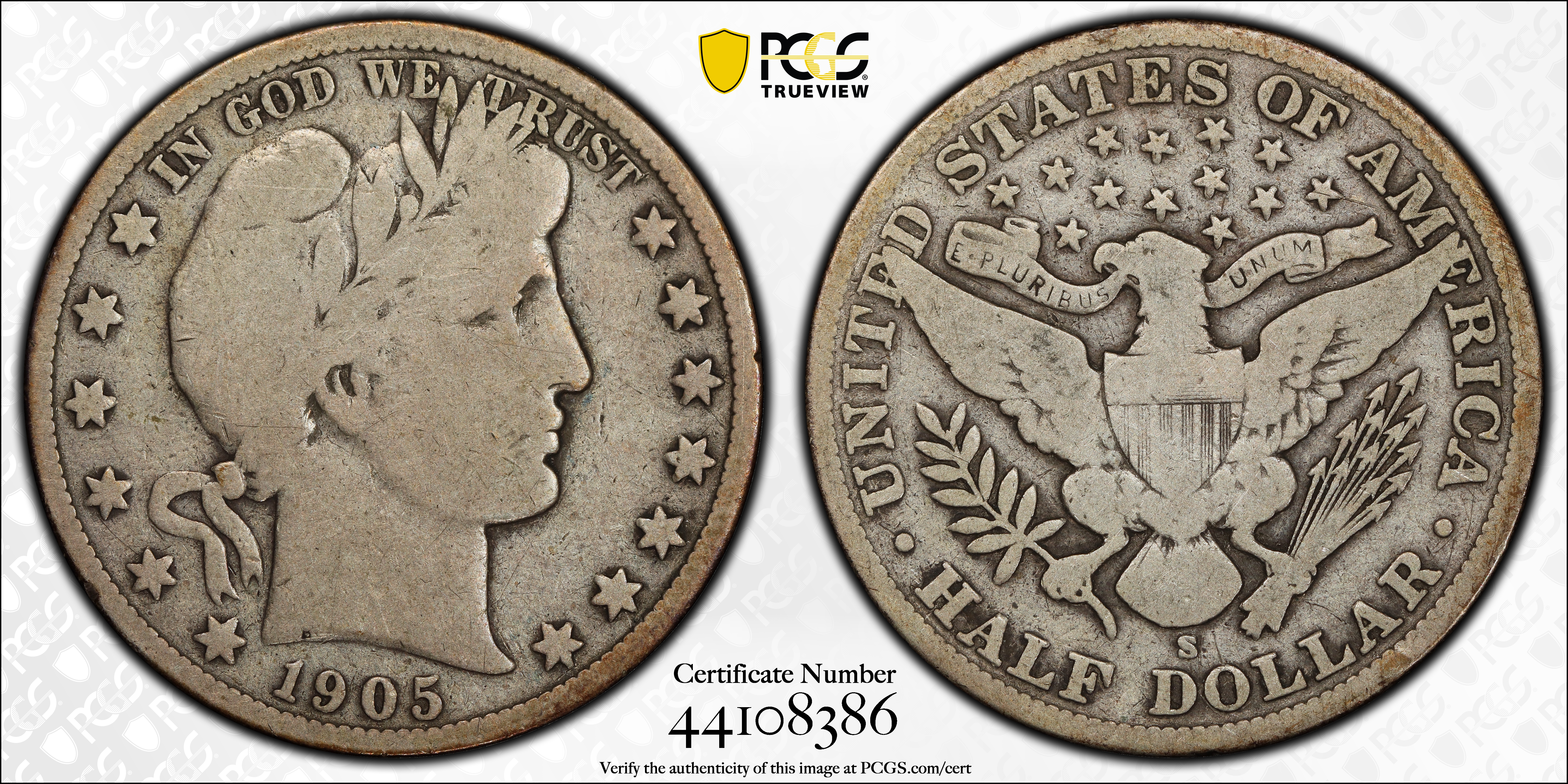 1905-S 50C G6 认证号44108386, PCGS号6503
