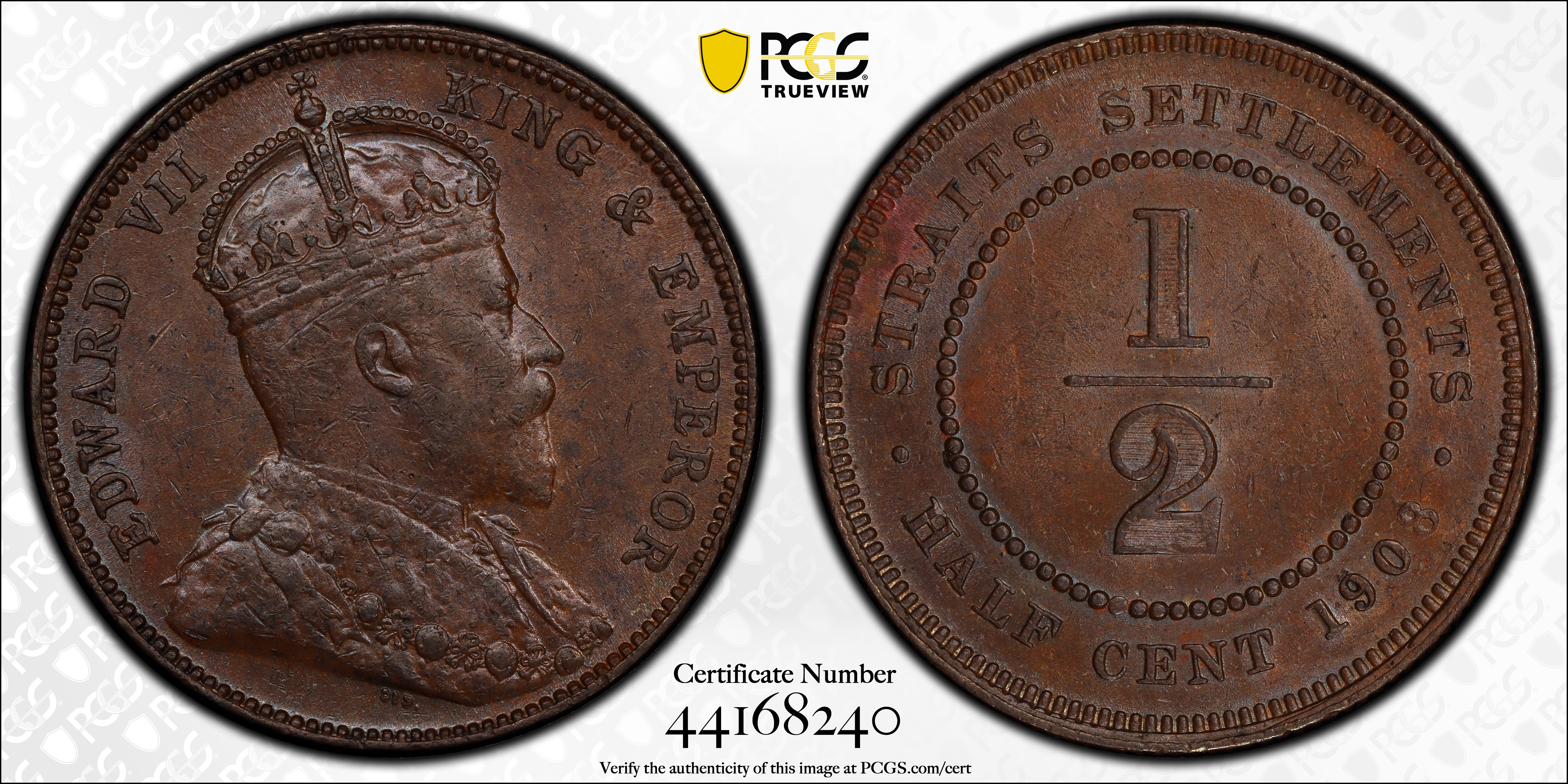 1908 1/2C, BN AU58BN 认证号44168240, PCGS号396873