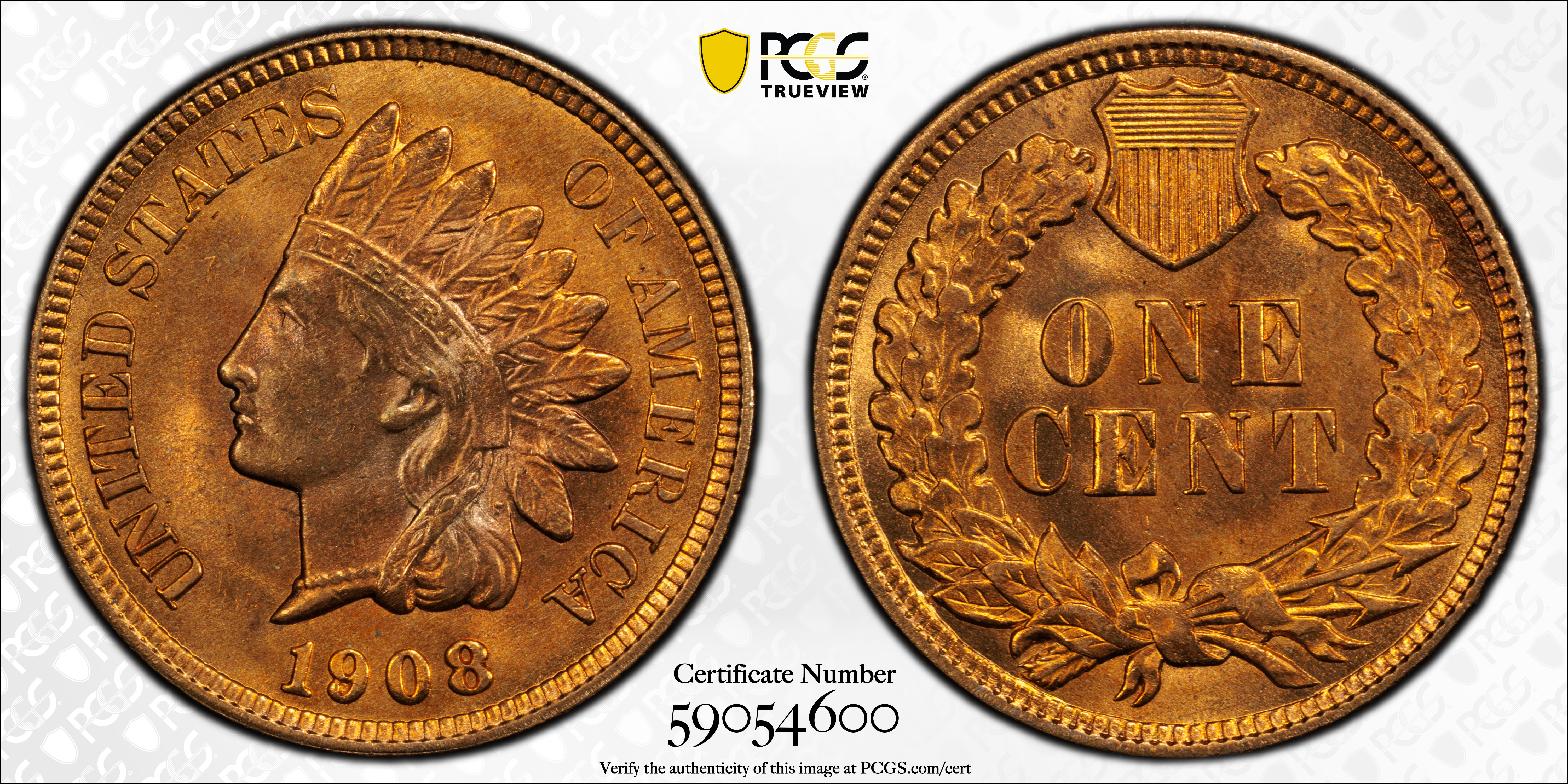 1908 1C, RD MS65RD 认证号59054600, PCGS号2231