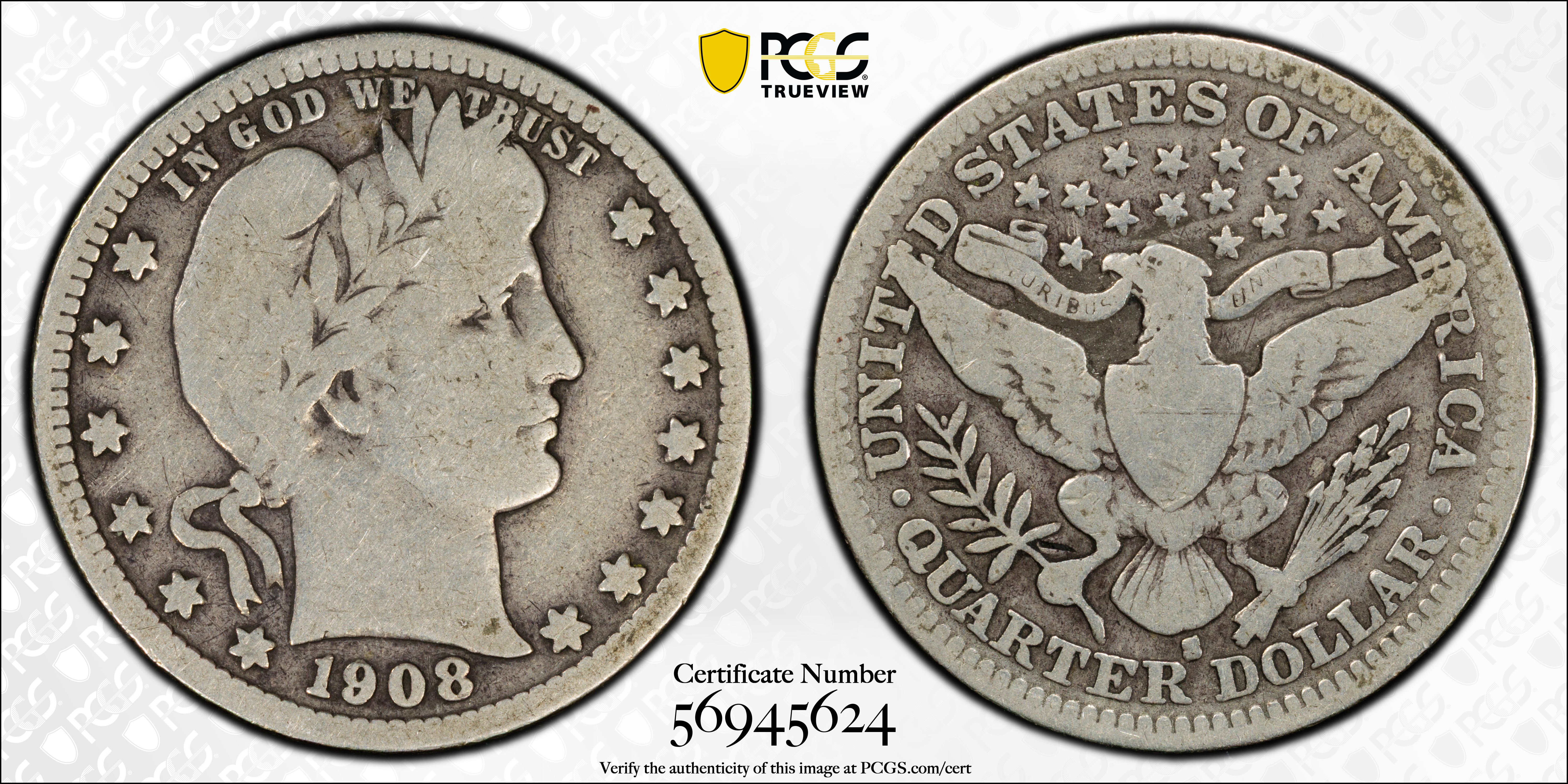 1908-S 25C VG8 认证号56945624, PCGS号5652