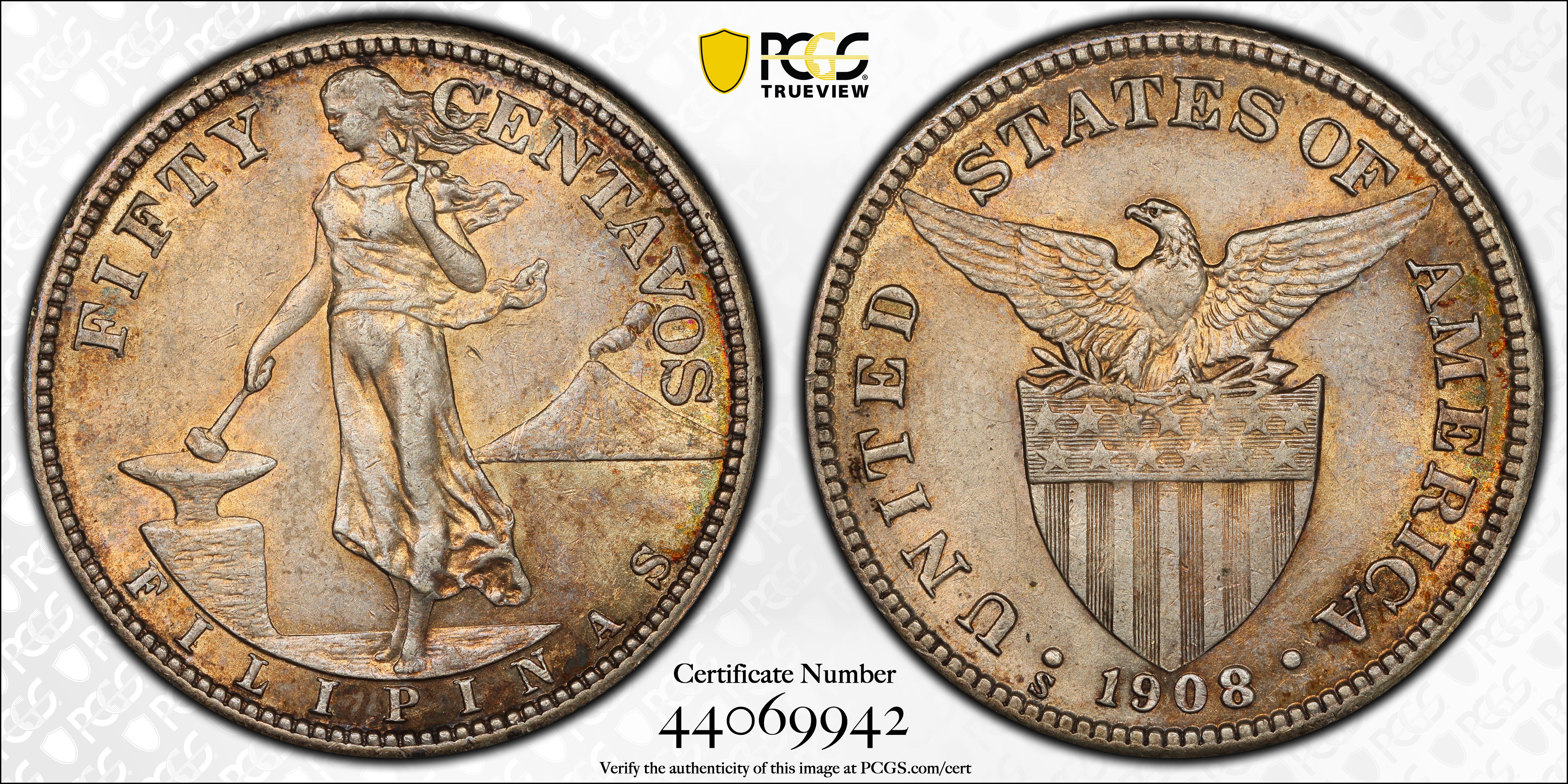1908-S 50C AU55 认证号44069942, PCGS号90355