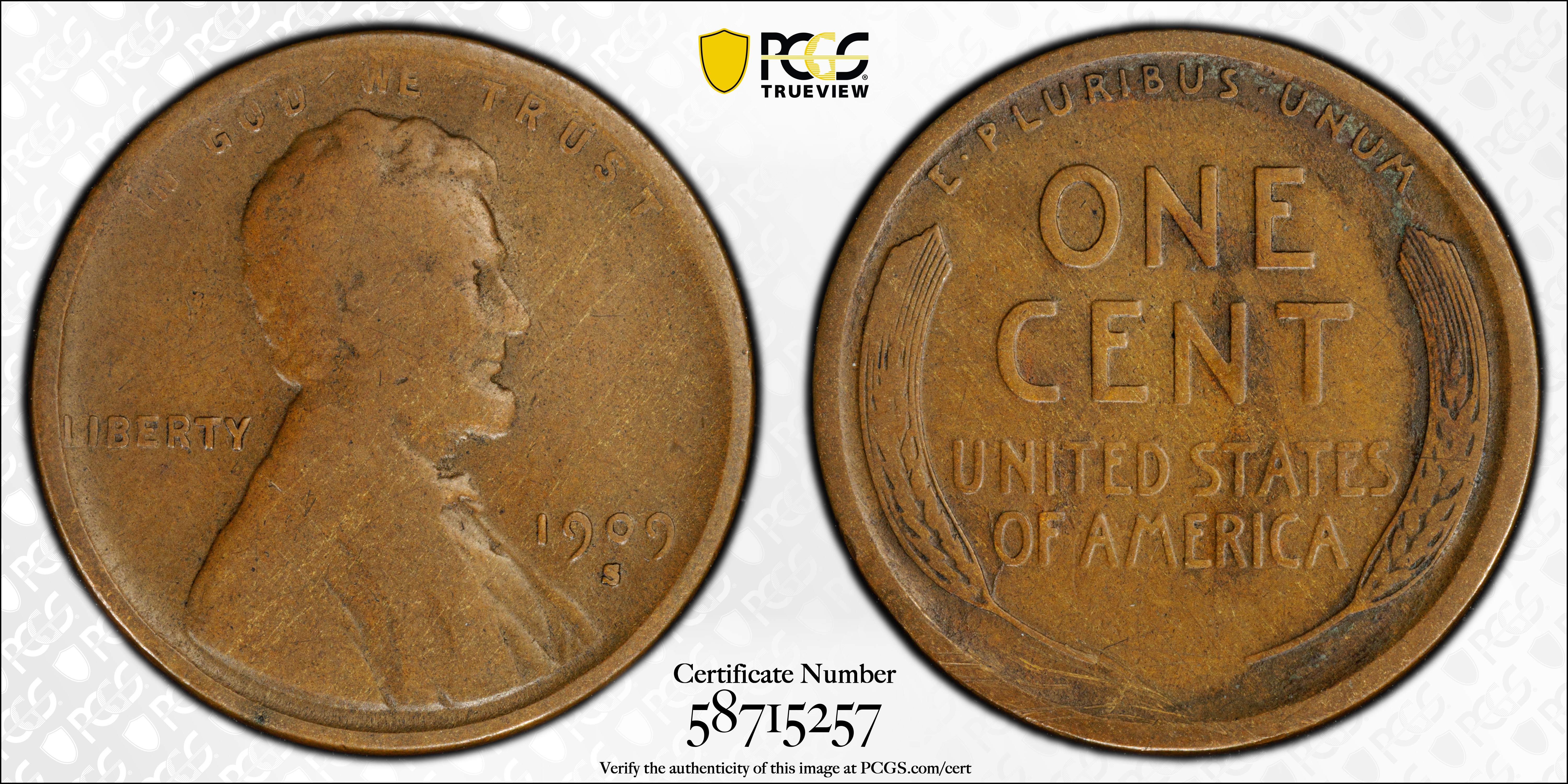 1909-S 1C Lincoln, BN N1BN 认证号58715257, PCGS号2432