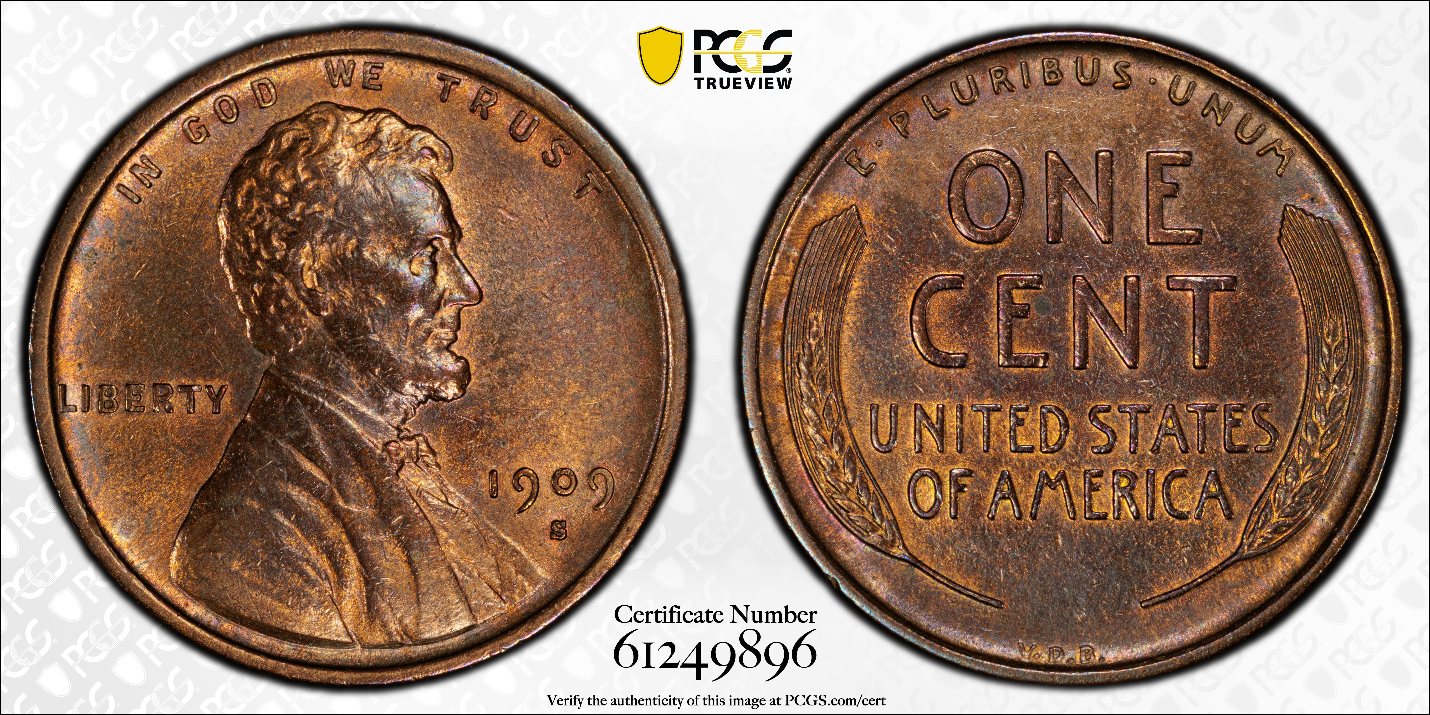 1909-S VDB 1C, BN N1BN 认证号61249896, PCGS号2426