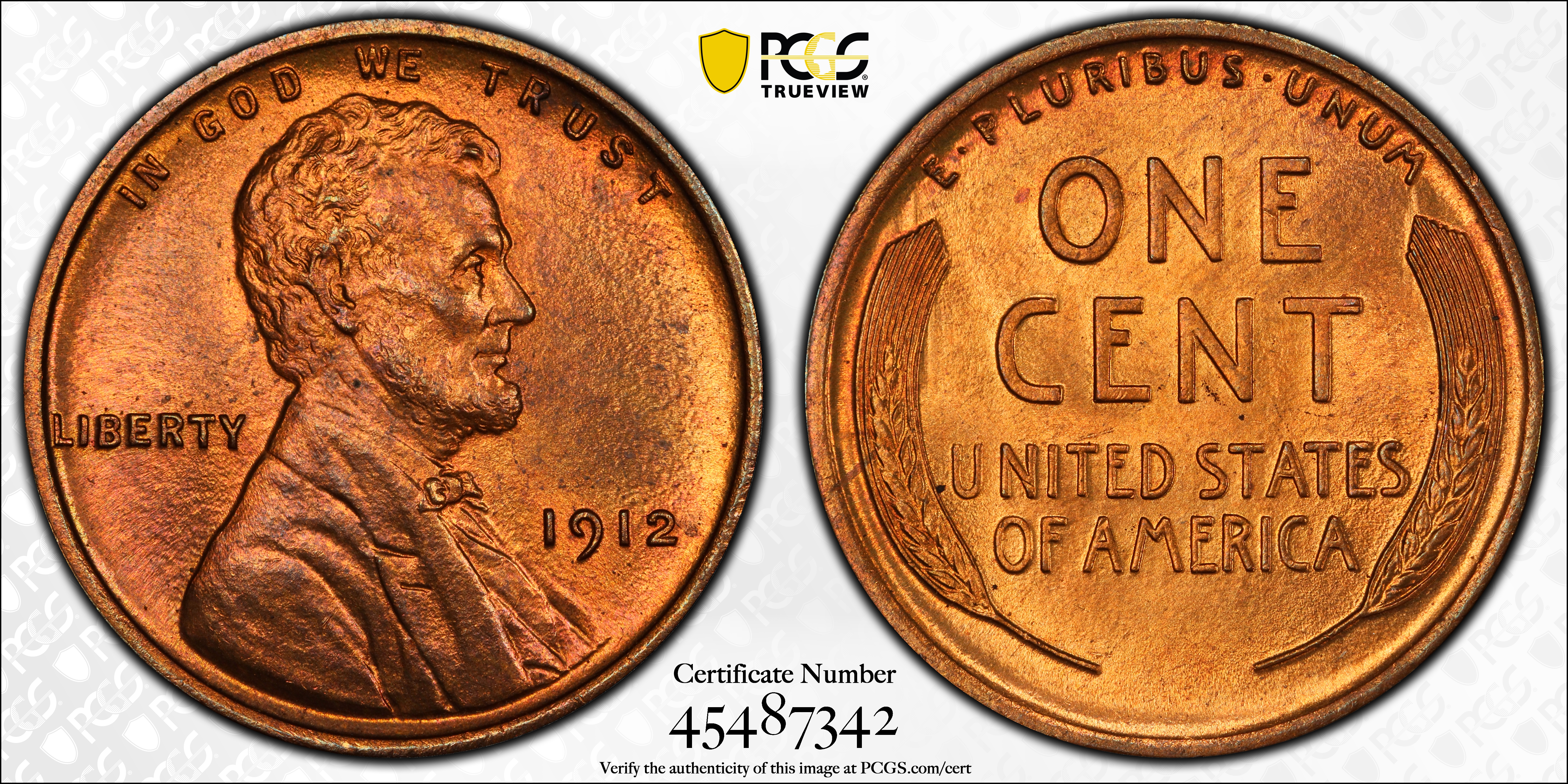 1912 1C, RB MS66RB 认证号45487342, PCGS号2451