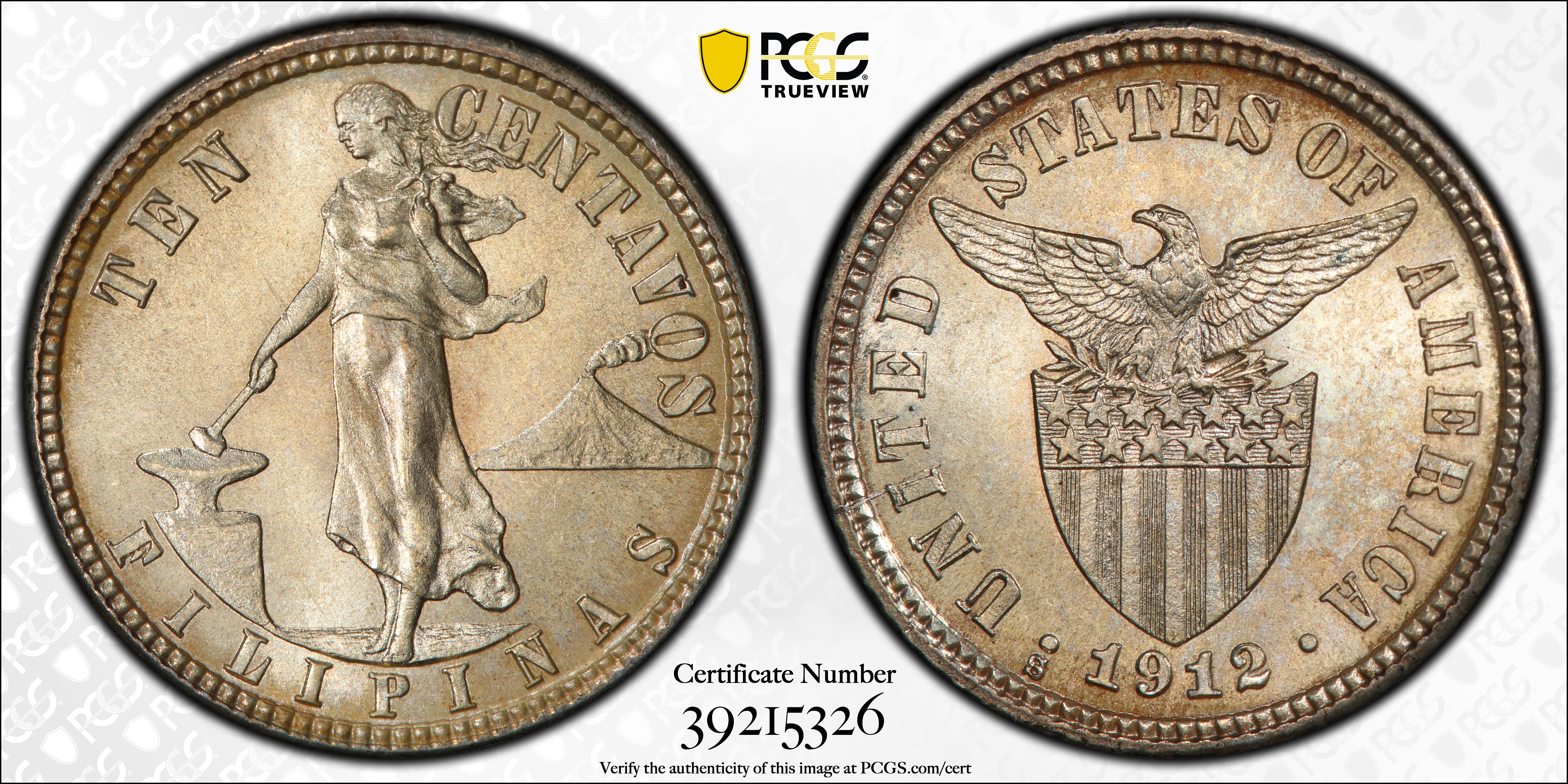 1912-S 10C MS65 认证号39215326, PCGS号90253