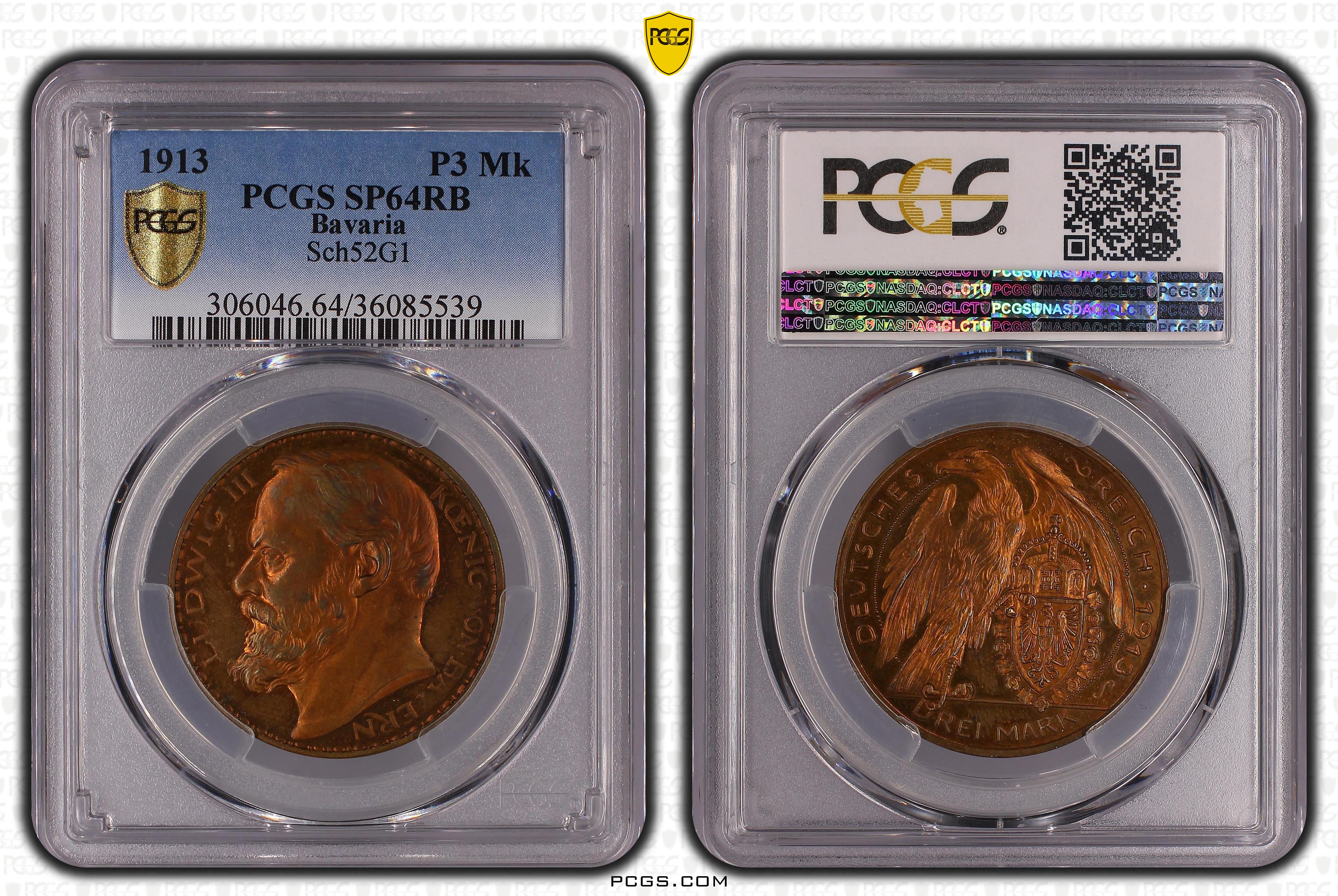 1913 P3 Mk Sch52G1, RB SP64RB 认证号36085539, PCGS号306046
