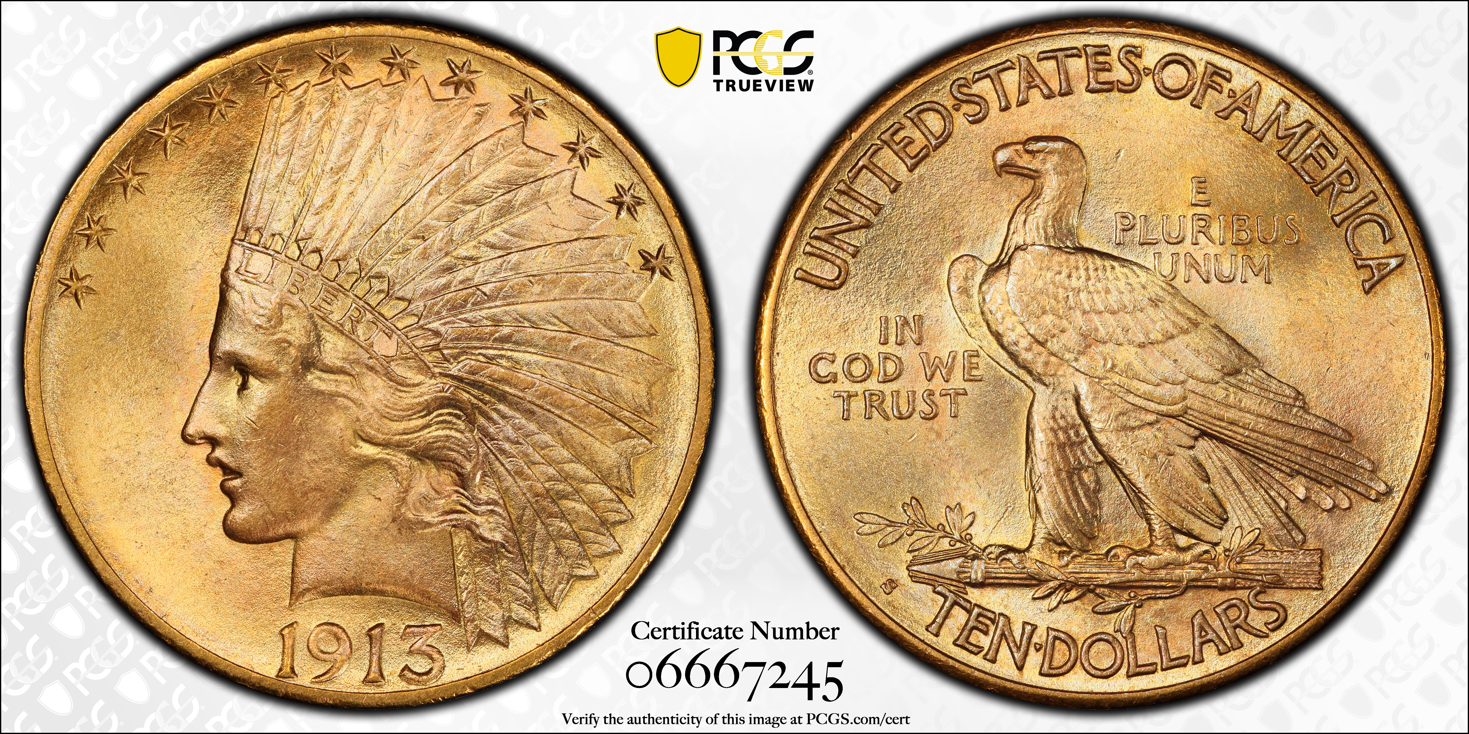 1913-S $10 MS65 认证号06667245, PCGS号8874