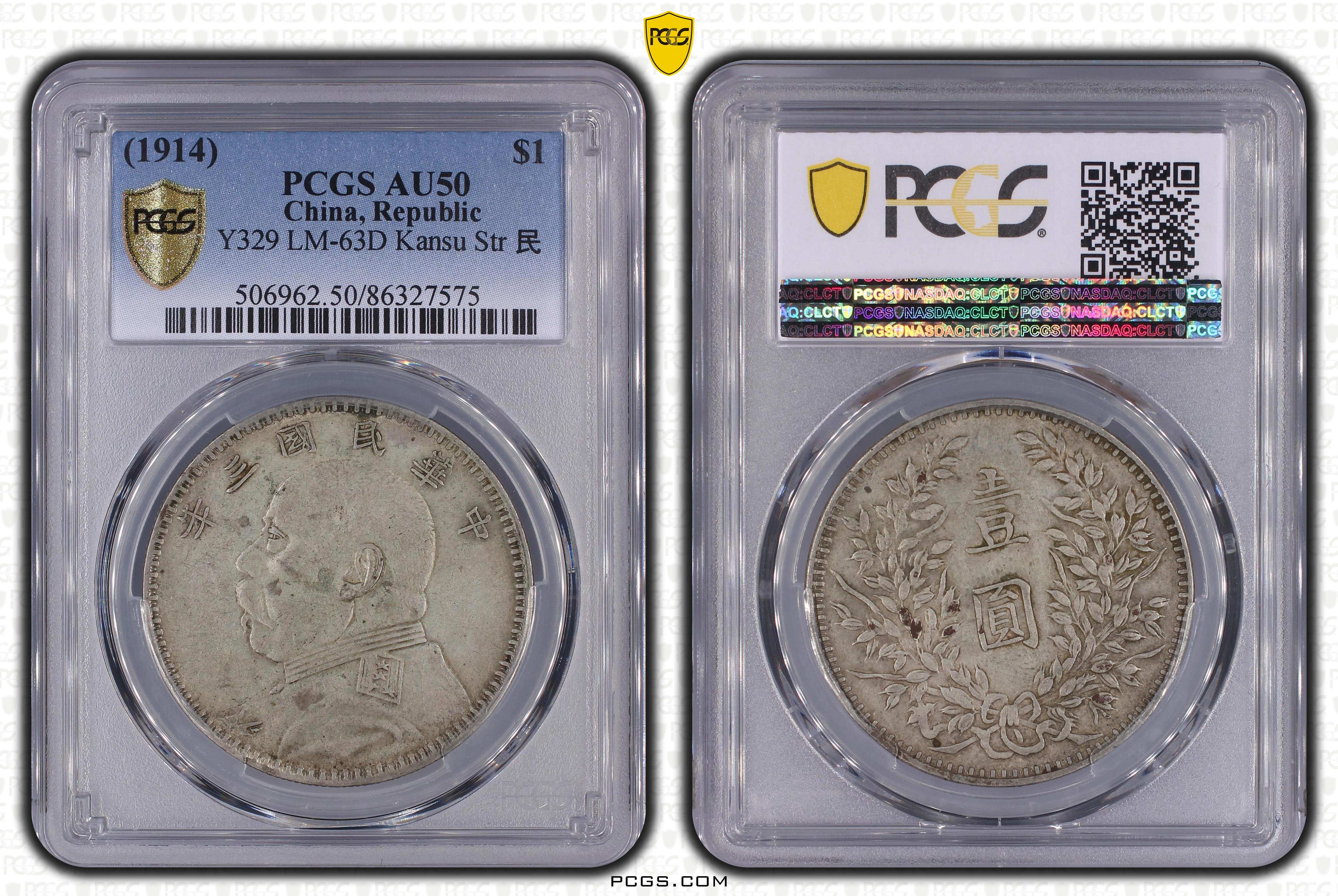 (1914)三 $1 LM-63D Kansu Str 民 AU50 认证号86327575, PCGS号506962